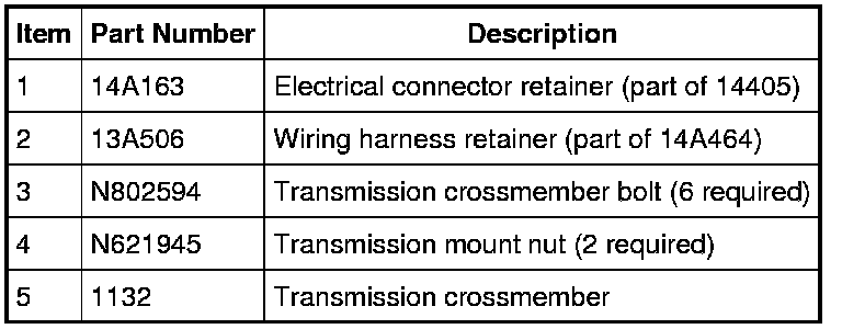 13. Detach the transmission electrical connector and wiring harness retainers from the crossmember. Remove the 2 transmission mount nuts and the crossmember.