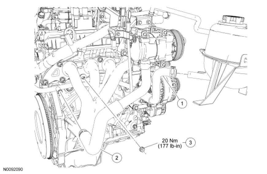 3. Drain the cooling system. For additional information, refer to Cooling System Draining, Filling and Bleeding - 2.3L Cooling System Draining, Filling and Bleeding.