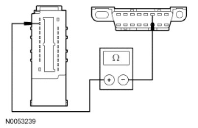 - Measure the resistance between the SJB C2280d-20, circuit VDB04 (WH/BU), harness side and the Data Link Connector (DLC) C251-6, circuit VDB04 (WH/BU), harness side.