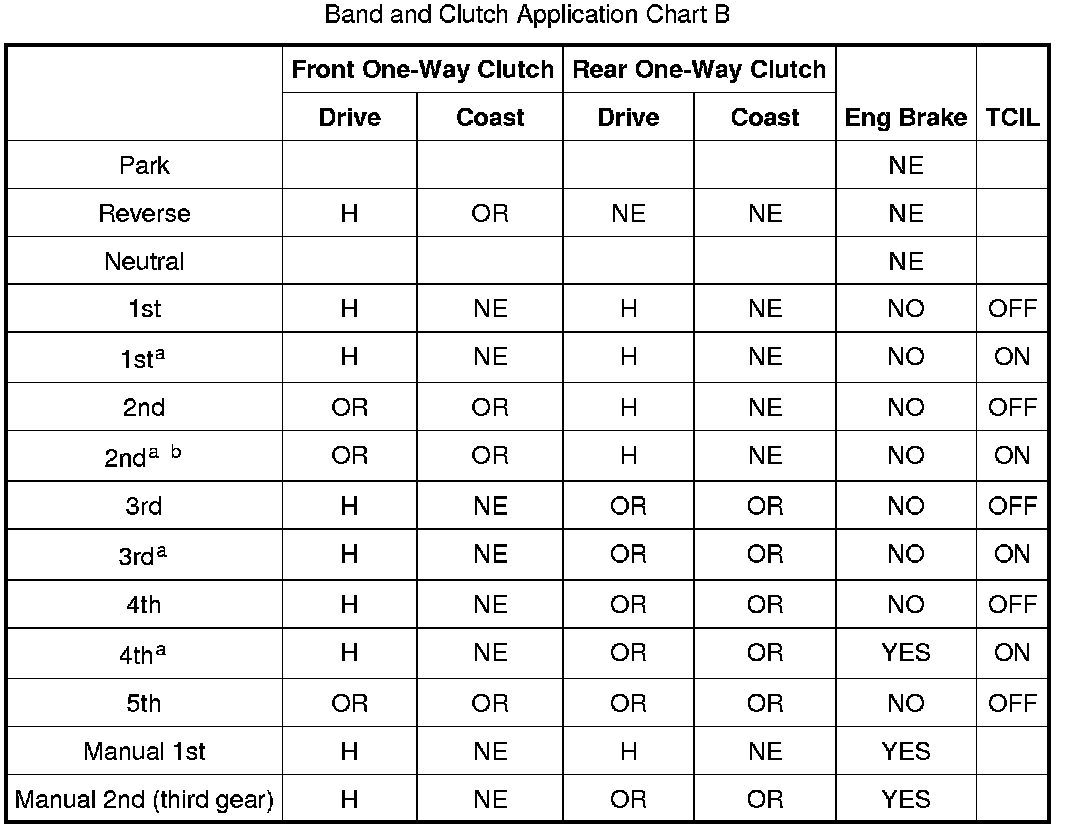 Band And Clutch Application Chart B: