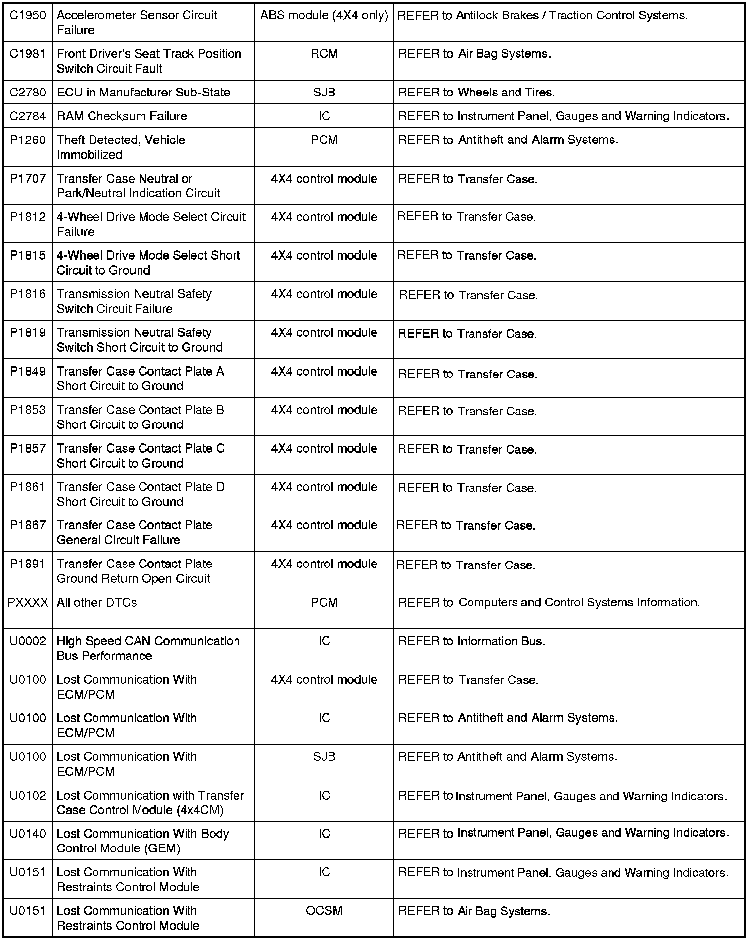 NOTE: Most powertrain (P-code) DTCs are diagnosed in the Computers and Control Systems Information. If the P-code retrieved is not listed below, refer to the Computers and Control Systems Information to continue diagnostics.