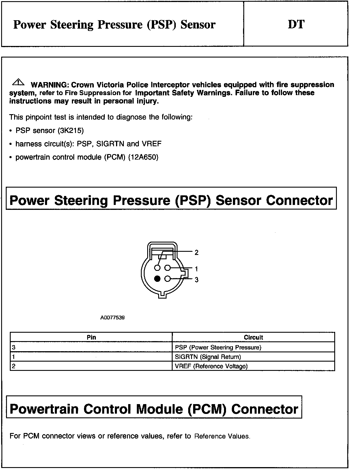 PINPOINT TEST DT: POWER STEERING PRESSURE (PSP) SENSOR