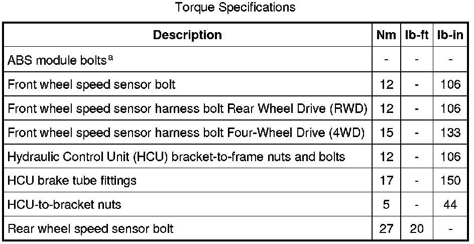 Torque Specifications