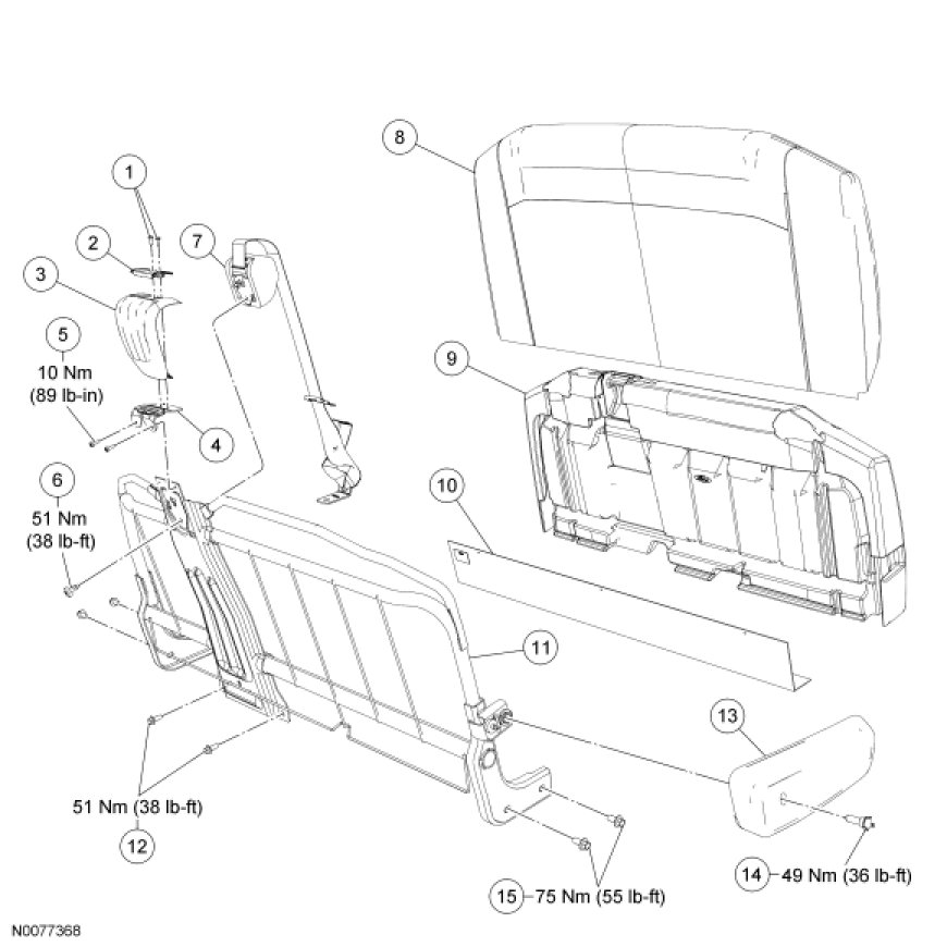 NOTE: Fifteen-passenger fifth row 4-passenger bench seat shown, 12-passenger fourth row similar.