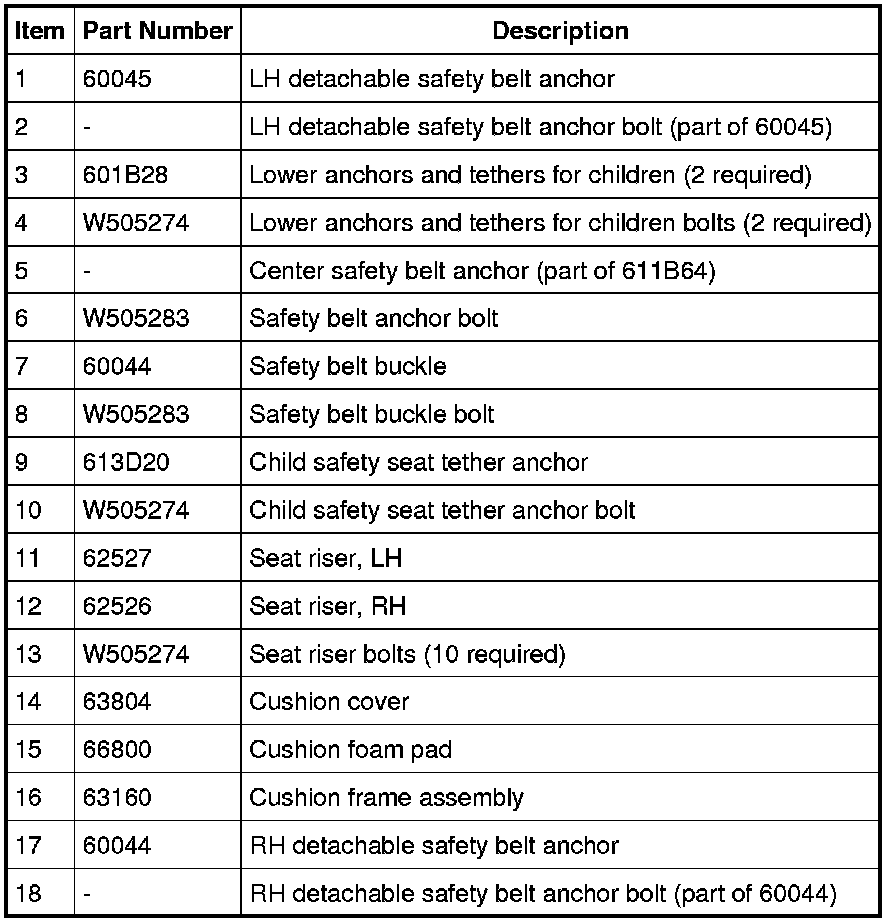 NOTE: Seven-passenger vehicle third row bench seat shown, others similar.