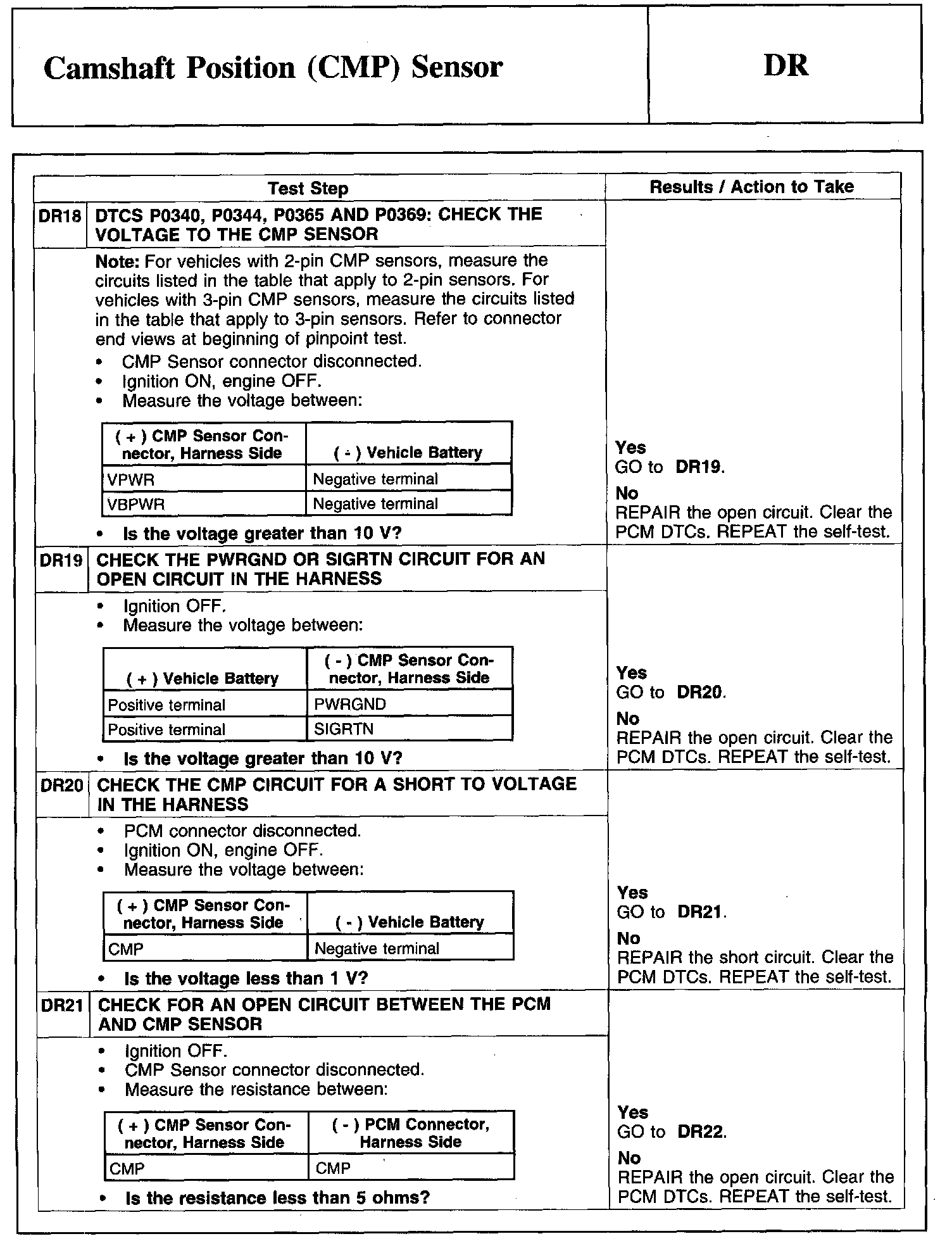 Test DR: Camshaft Position (CMP) Sensor