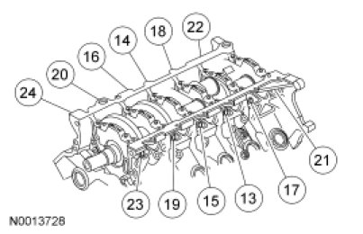 Tighten fasteners 13 through 24 in 2 stages, in the sequence shown.