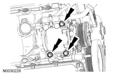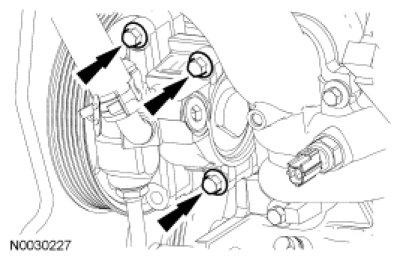 12. Remove the 3 bolts and position the A/C compressor aside.