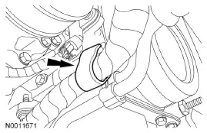 16. Position the transmission fluid cooler tube support bracket, connect the tubes and install the nut.