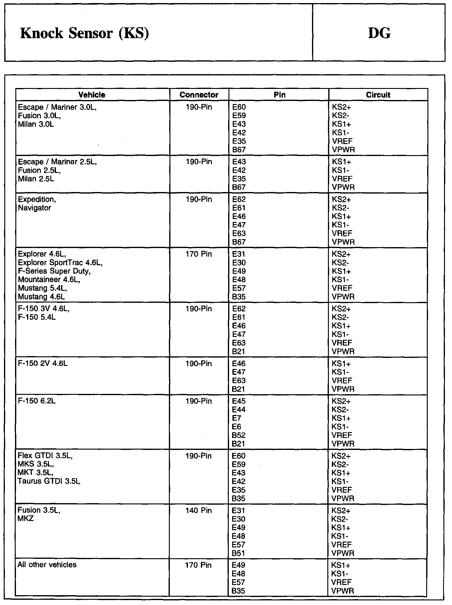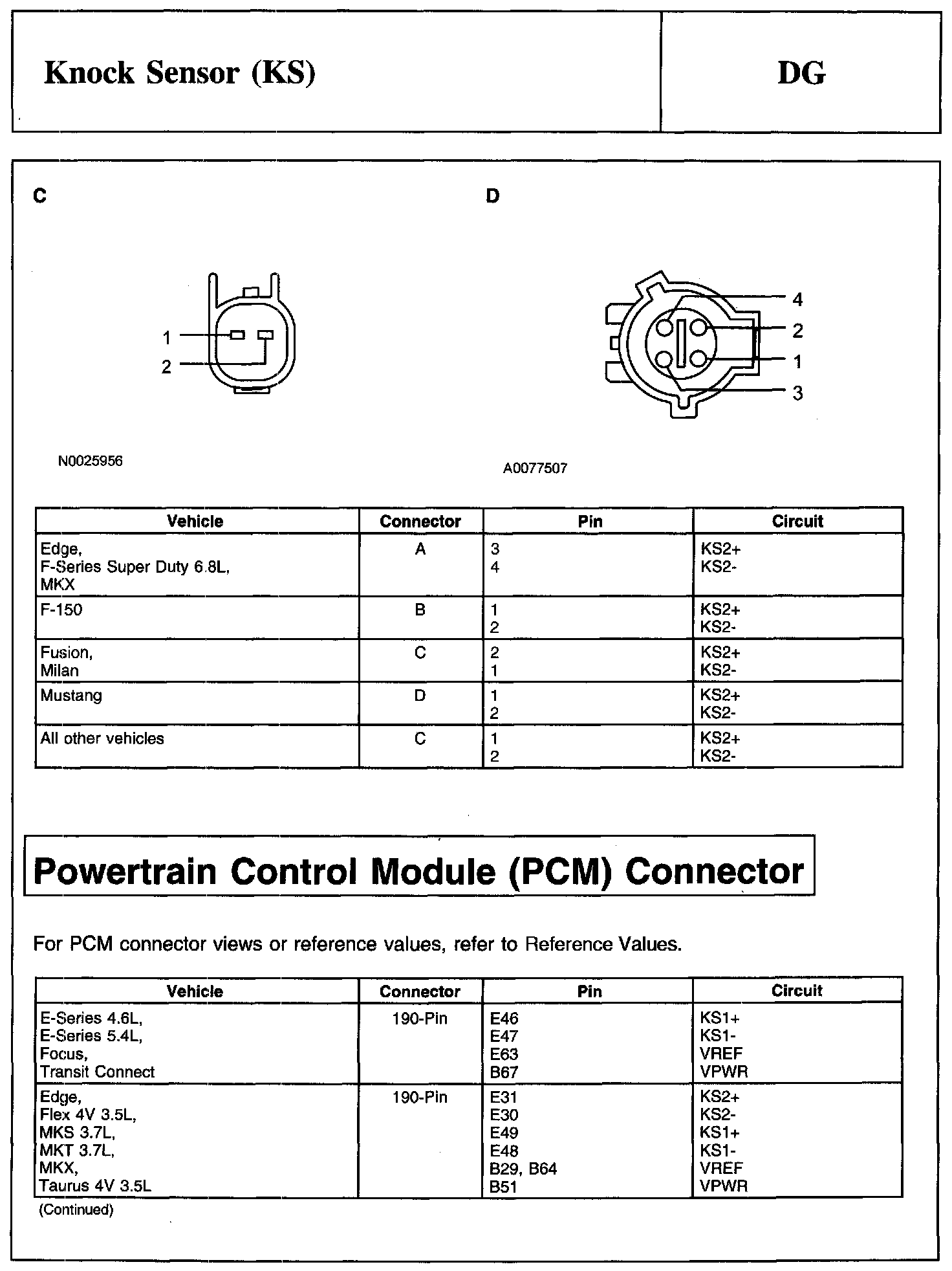 PINPOINT TEST DG: KNOCK SENSOR (KS)Knock Sensor 1 (KS1) Connector: