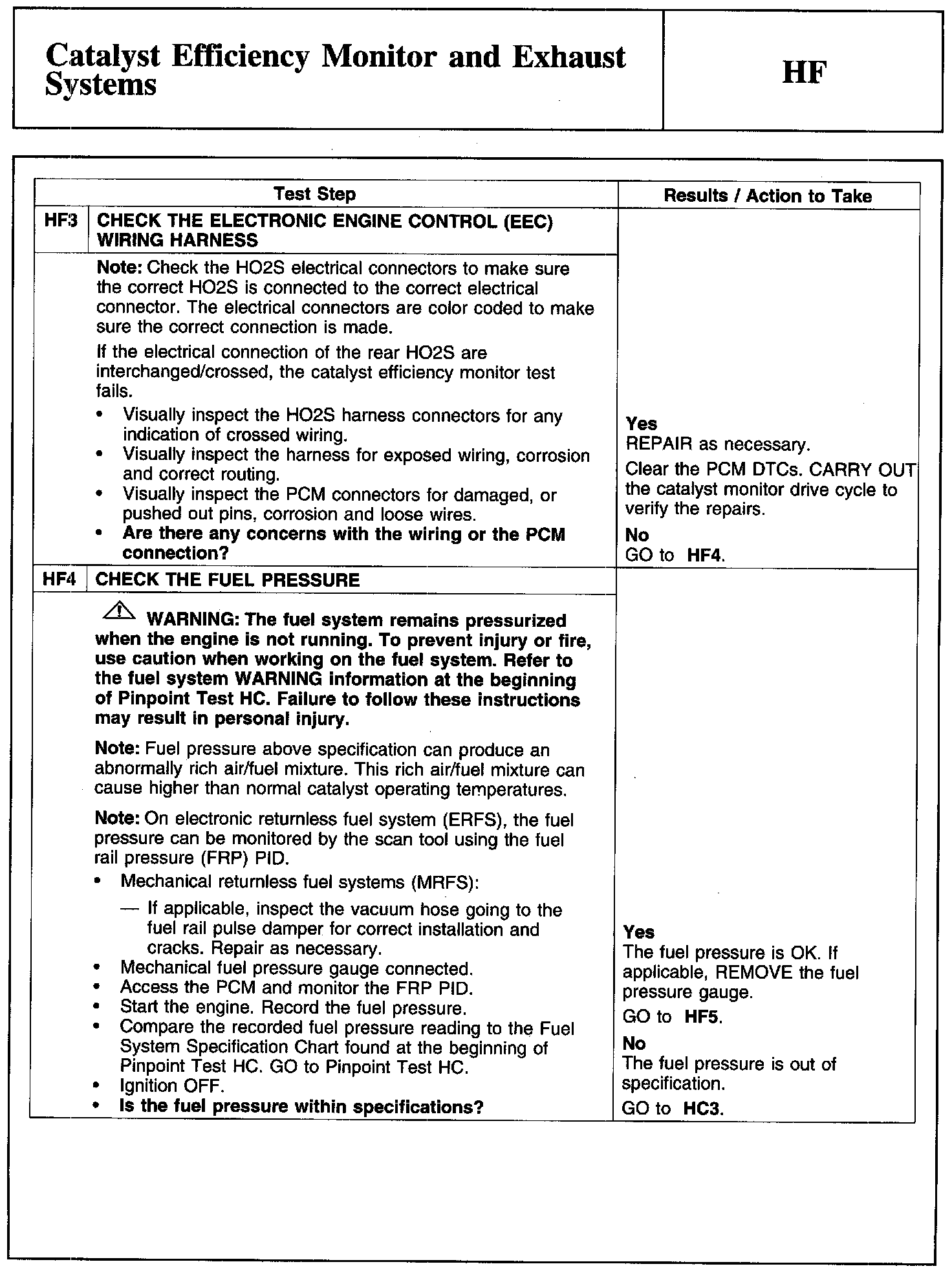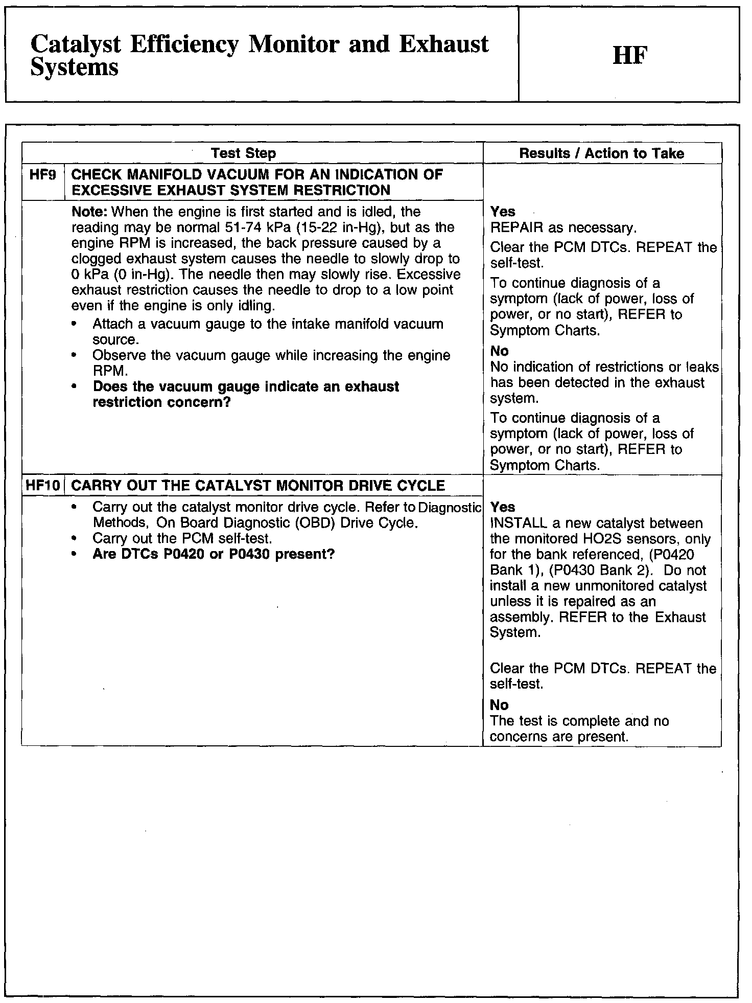 Test HF: Catalyst Efficiency Monitor and Exhaust Systems