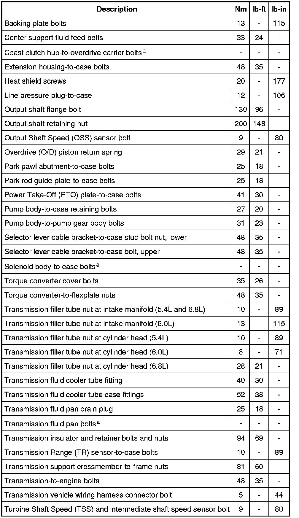 Torque Specifications