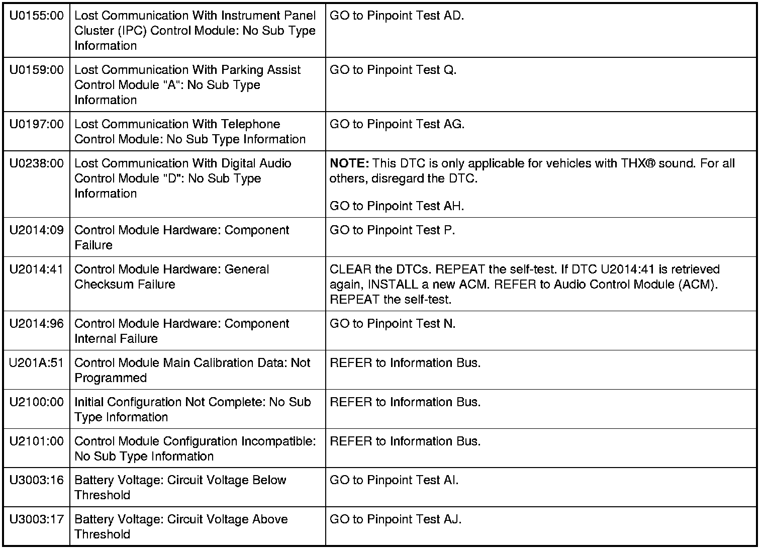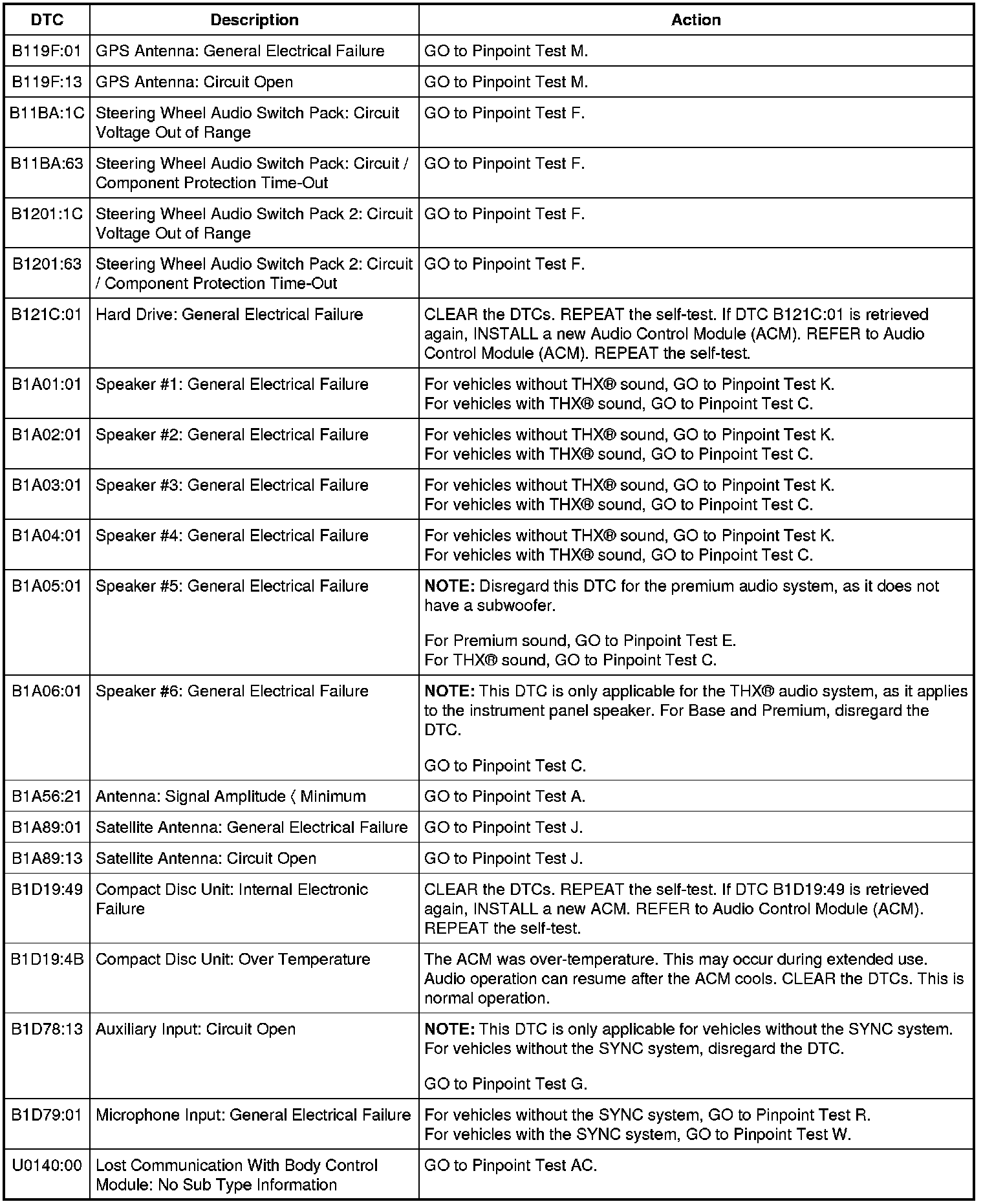 Audio Control Module (ACM) - With Navigation DTC Chart