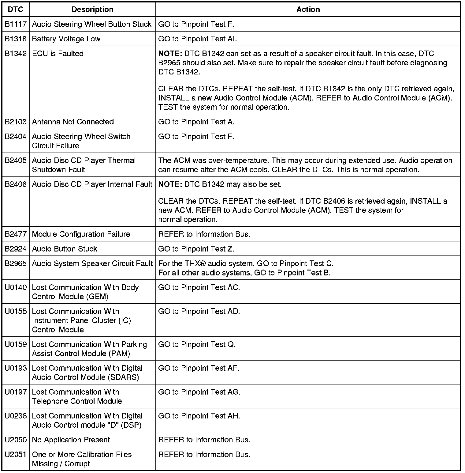 Audio Control Module (ACM) - Without Navigation DTC Chart