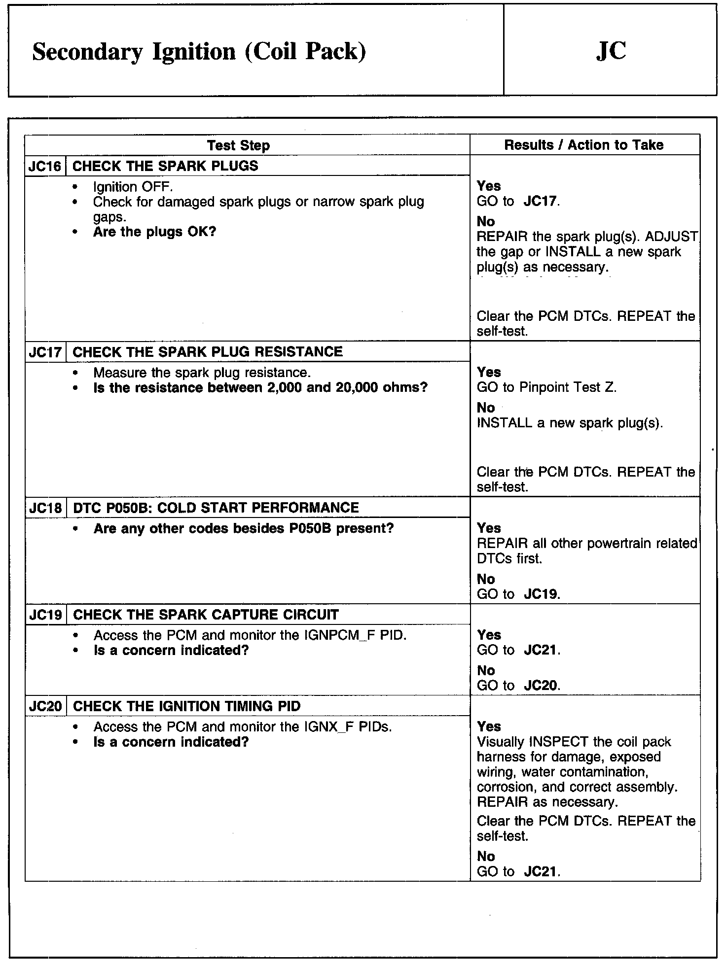 PINPOINT TEST JC: SECONDARY IGNITION (COIL PACK)