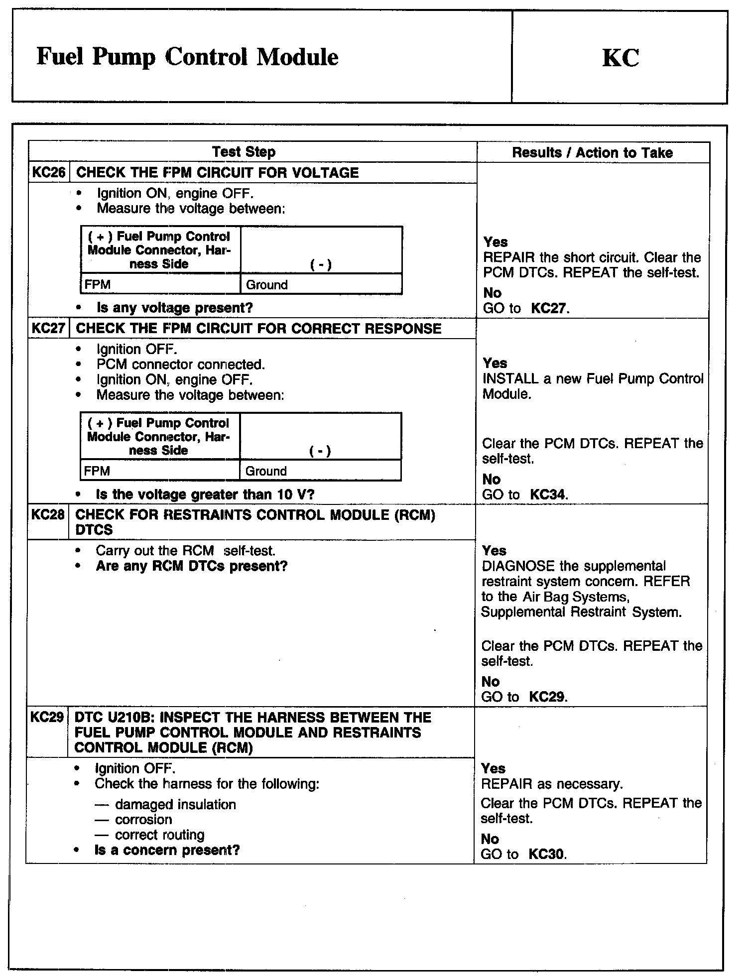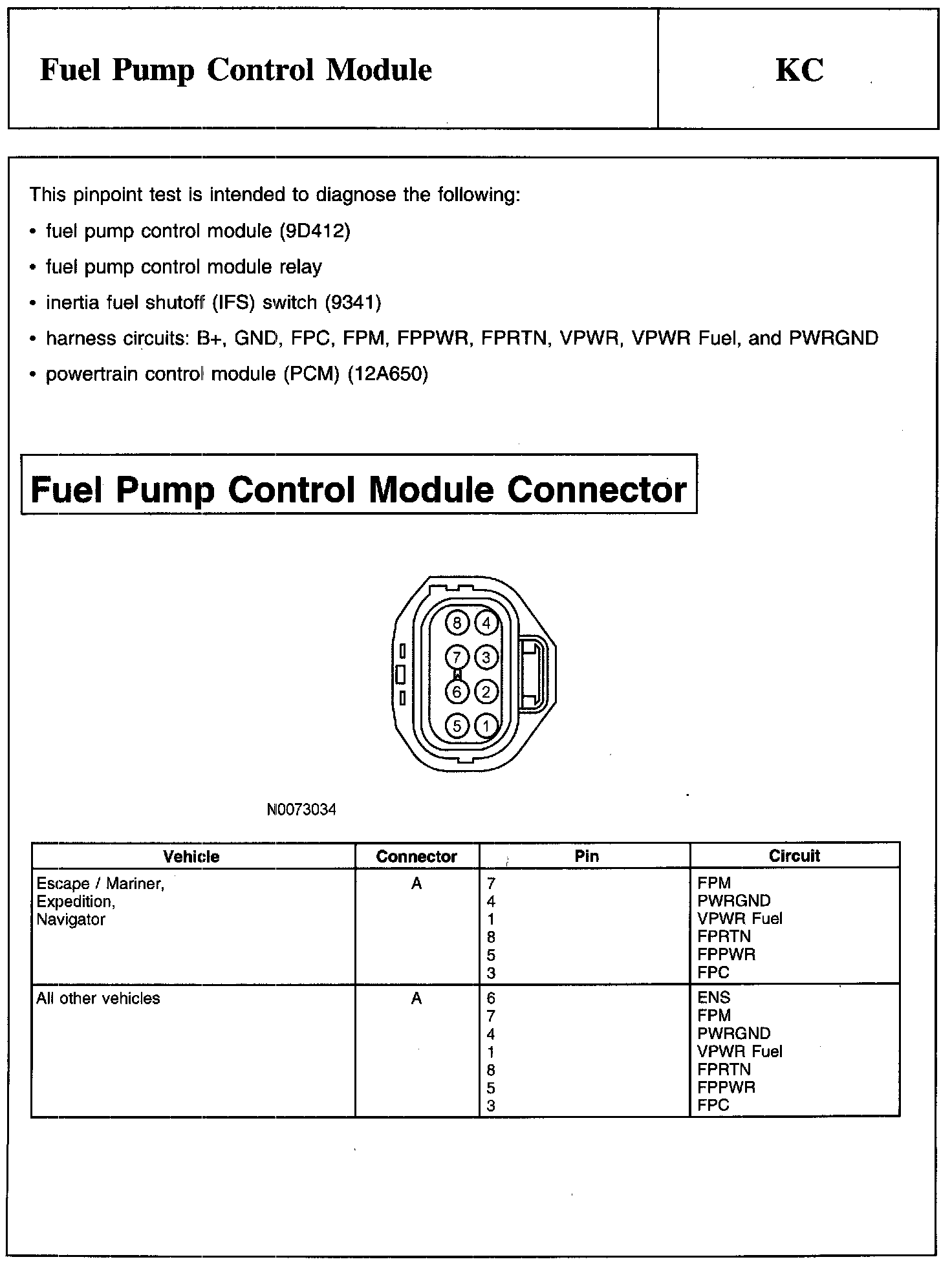 PINPOINT TEST KC: FUEL PUMP CONTROL MODULEFuel Pump Control Module Connector: