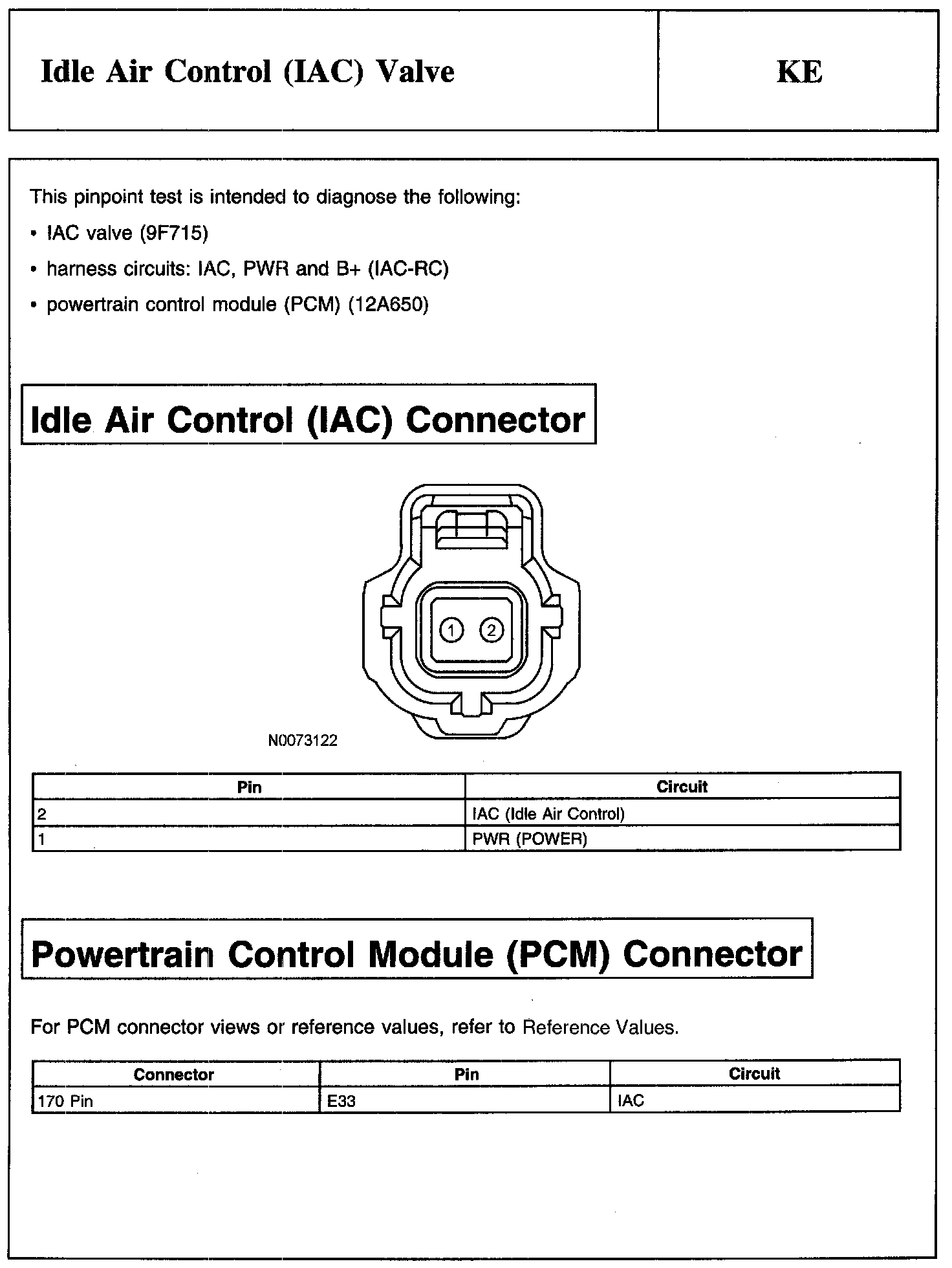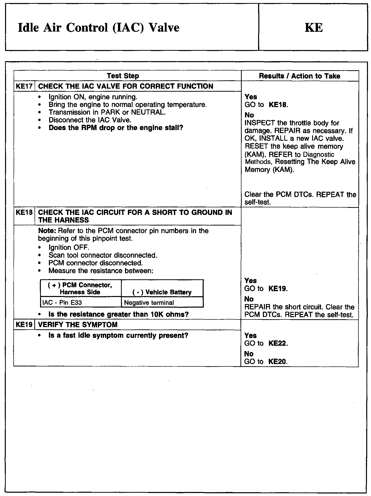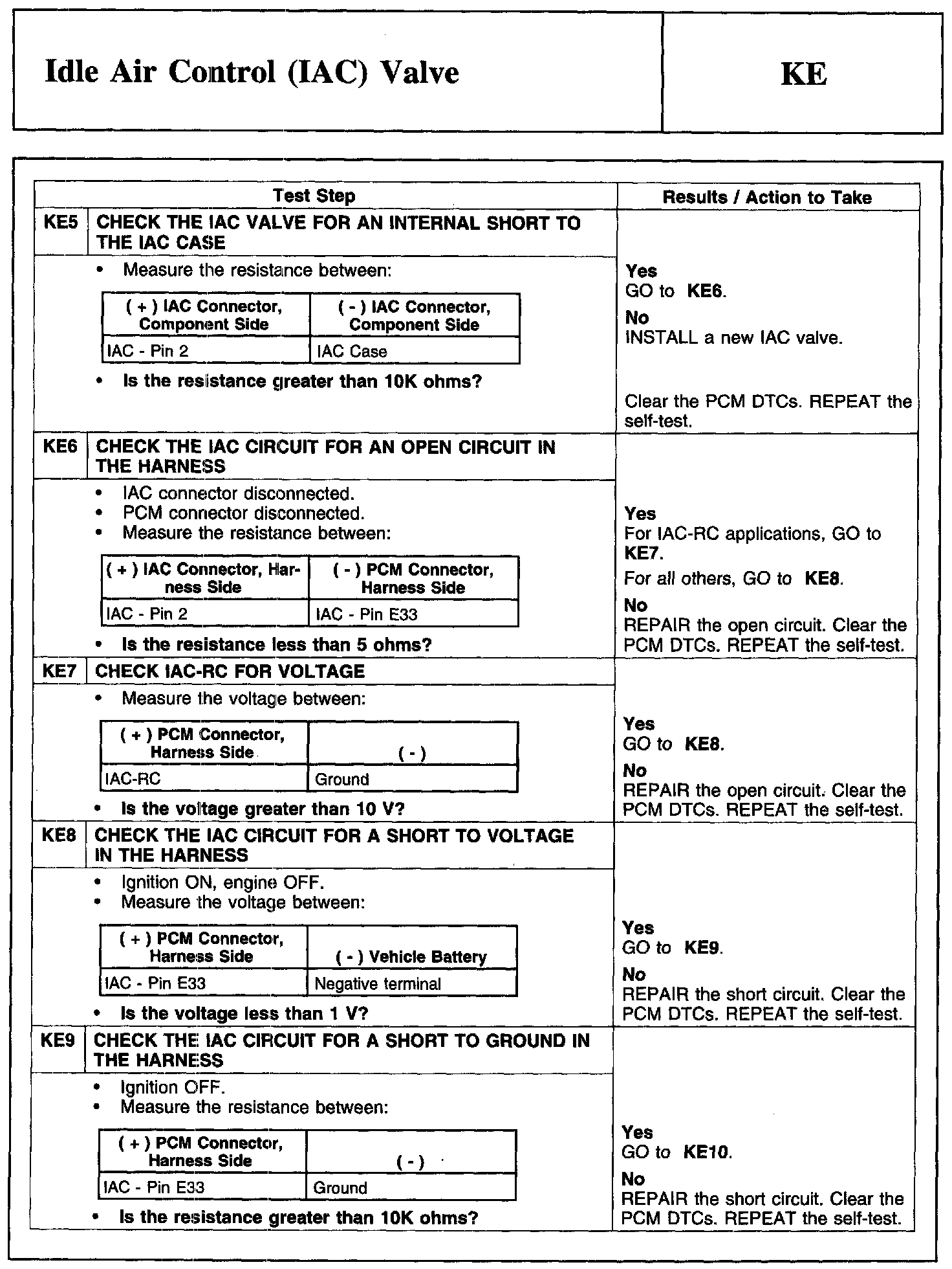 Test KE: Idle Air Control (IAC) Valve