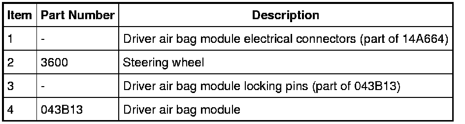 NOTICE: The driver air bag module electrical connectors are unique and cannot be reversed when connected to the driver air bag module. Match the electrical connector key to the keyway in the driver air bag module. Do not force the electrical connectors into the driver air bag module. Damage to the connector or component may occur.