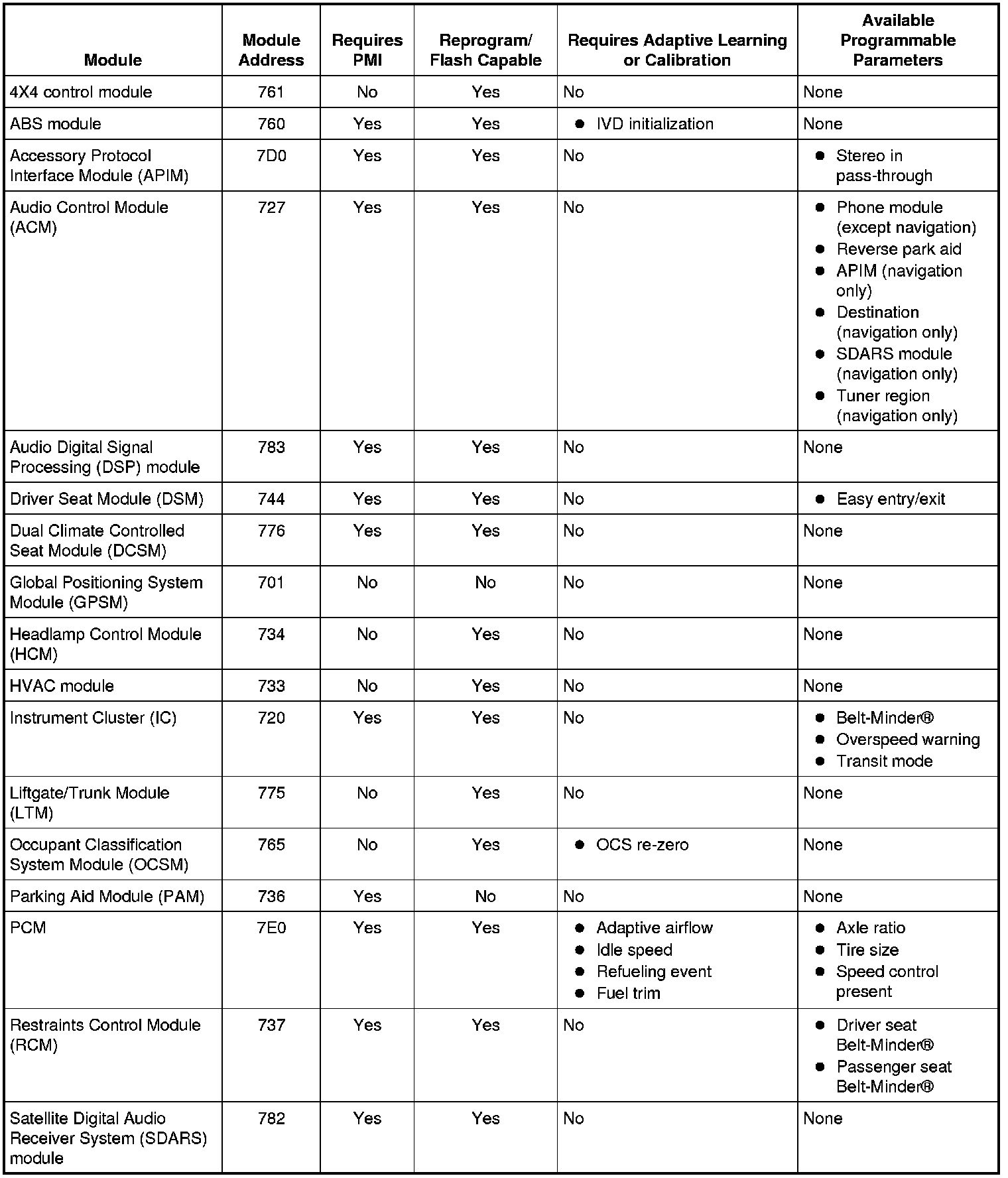 Programmable parameters are customer preference items that may be modified by the dealer via the scan tool or in some cases, modified by the customer following a procedure listed in the Owner's Literature. While many configuration options may exist for a module, only a few of these options are programmable parameters.