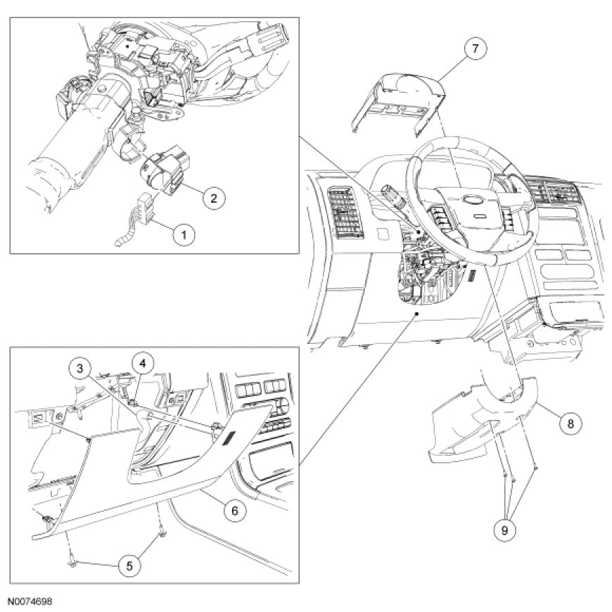 - Remove the steering column opening cover.
