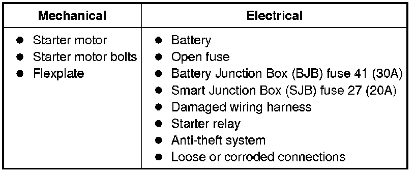 NOTE: The anti-theft system must be functioning correctly before a logical starting system diagnosis can be carried out. Address anti-theft system concerns before continuing. Refer to Antitheft and Alarm Systems.