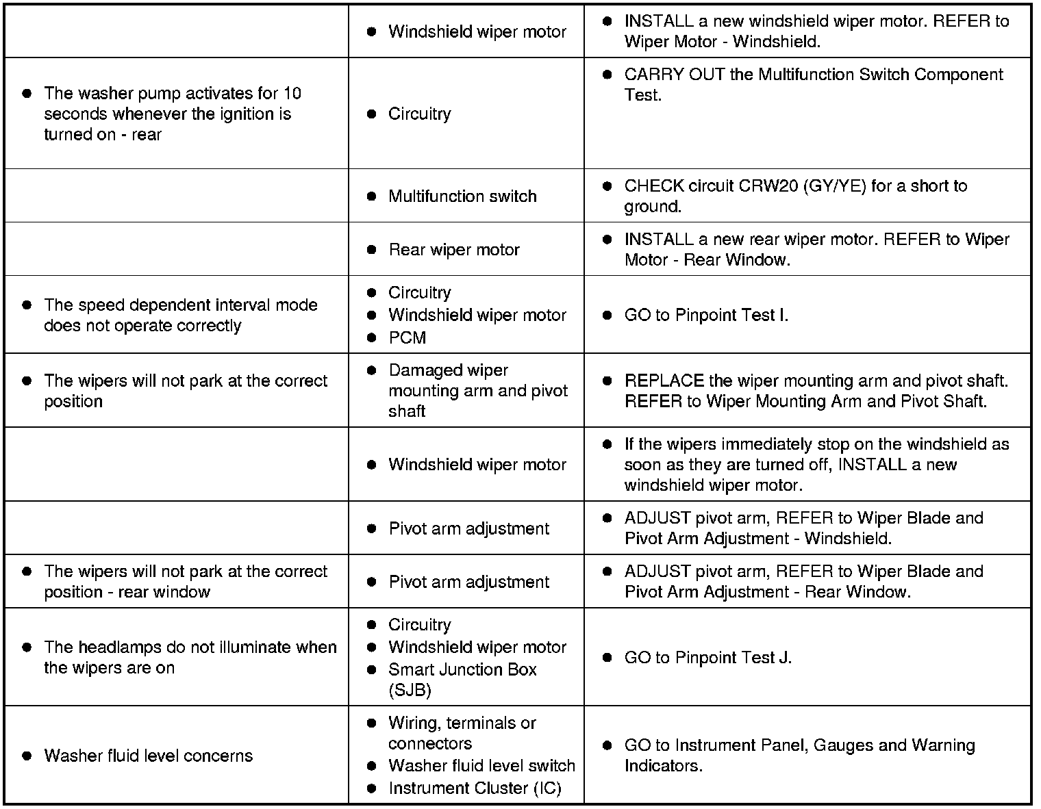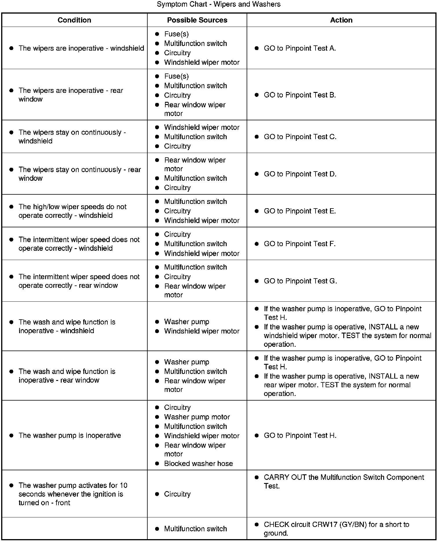 Symptom Chart - Wipers and Washers