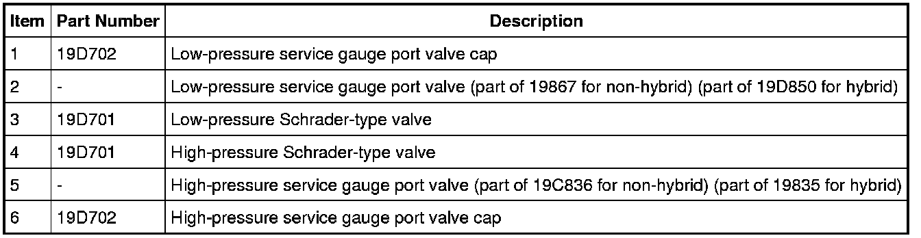 NOTE: Different valve cores are used for different engine applications. Use only the valve core listed in the Ford Catalog Advantage(TM) or equivalent for the vehicle and fitting being serviced.
