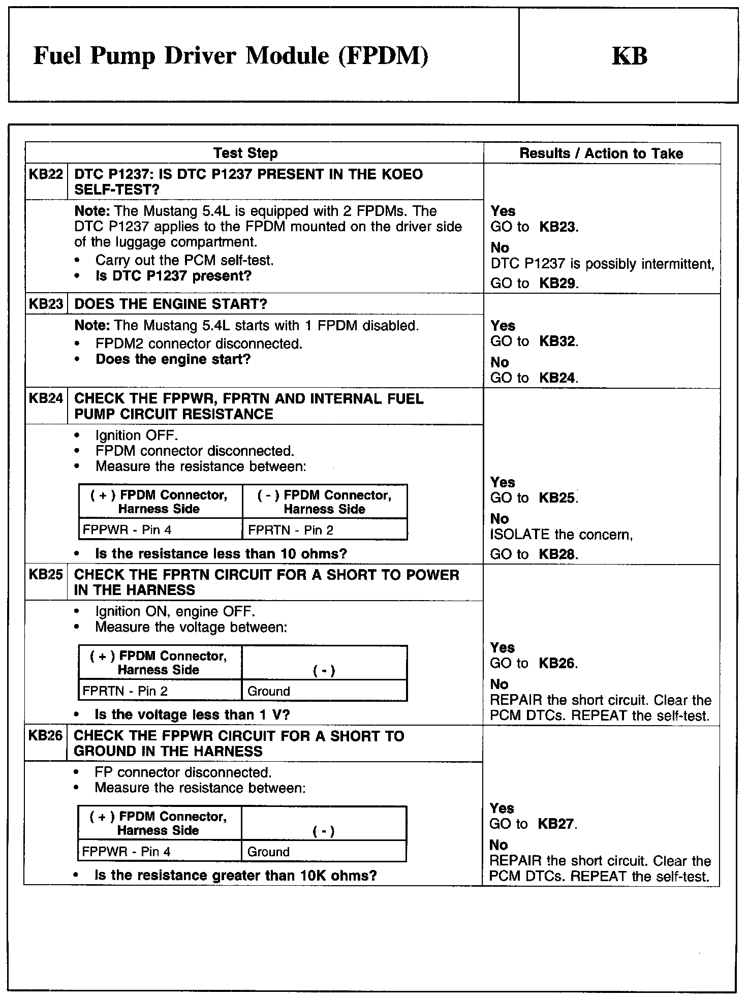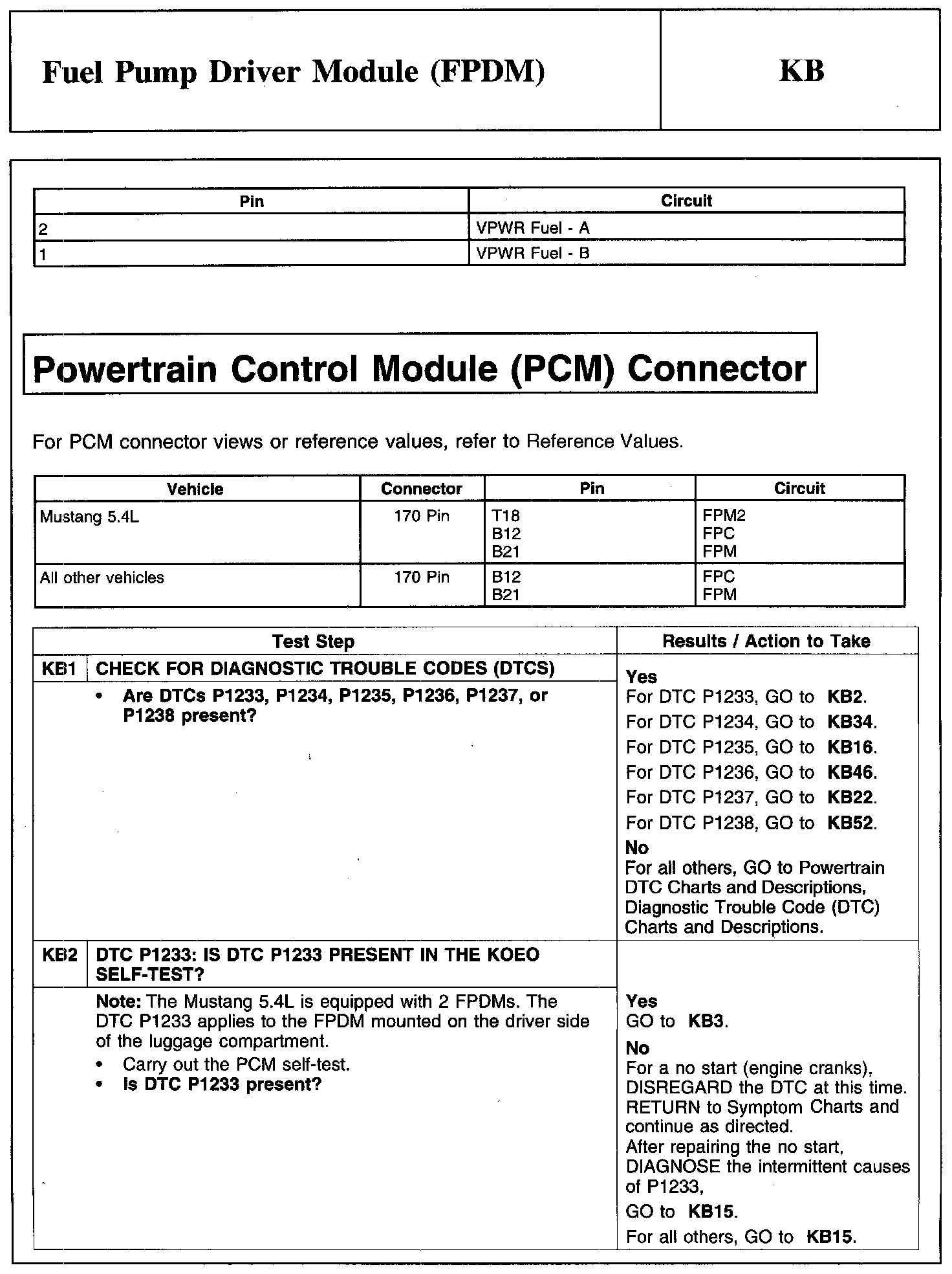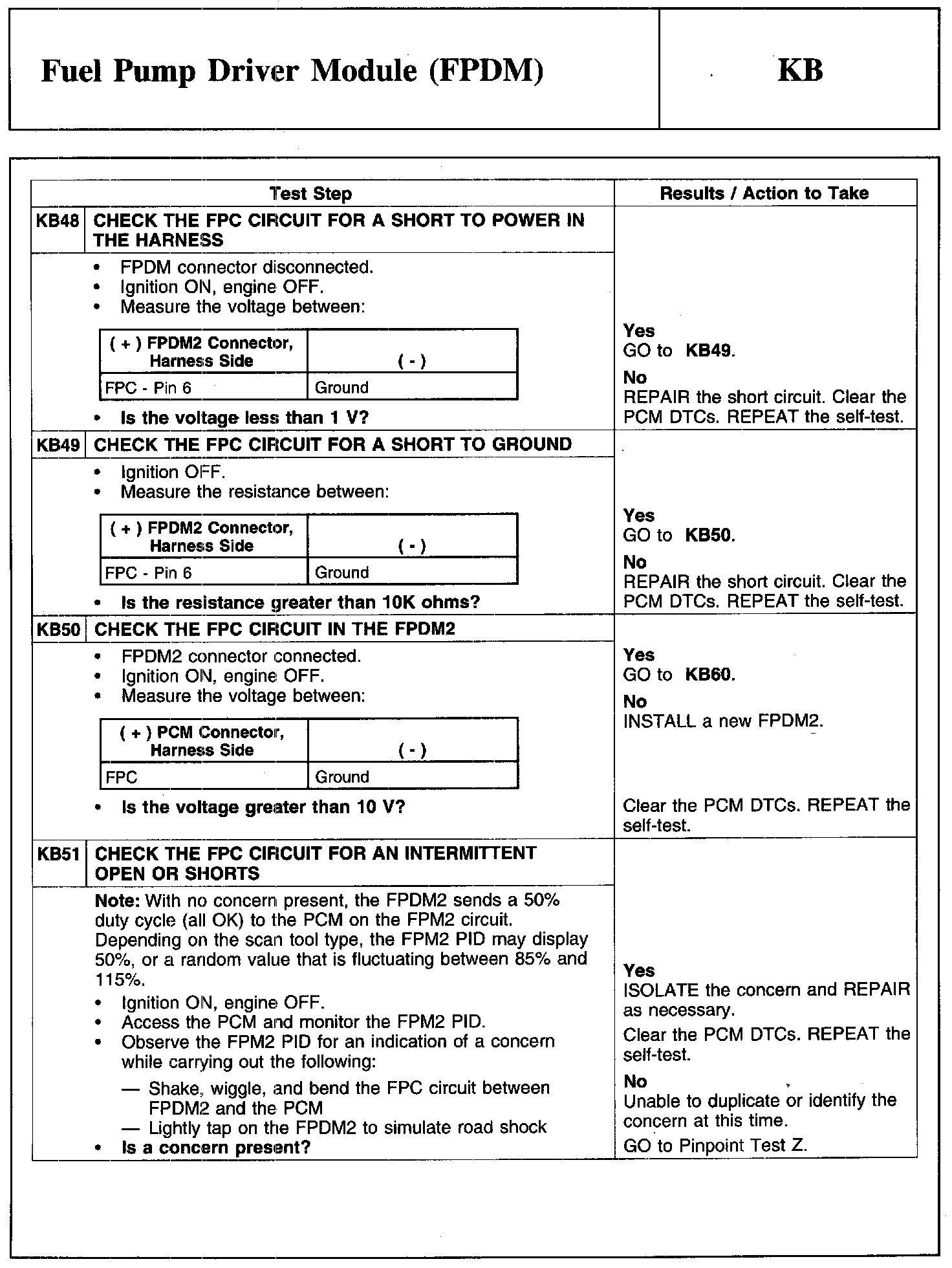 PINPOINT TEST KB: FUEL PUMP DRIVER MODULE (FPDM)Warning And Fuel Pump Driver Module (FPDM) Connector: