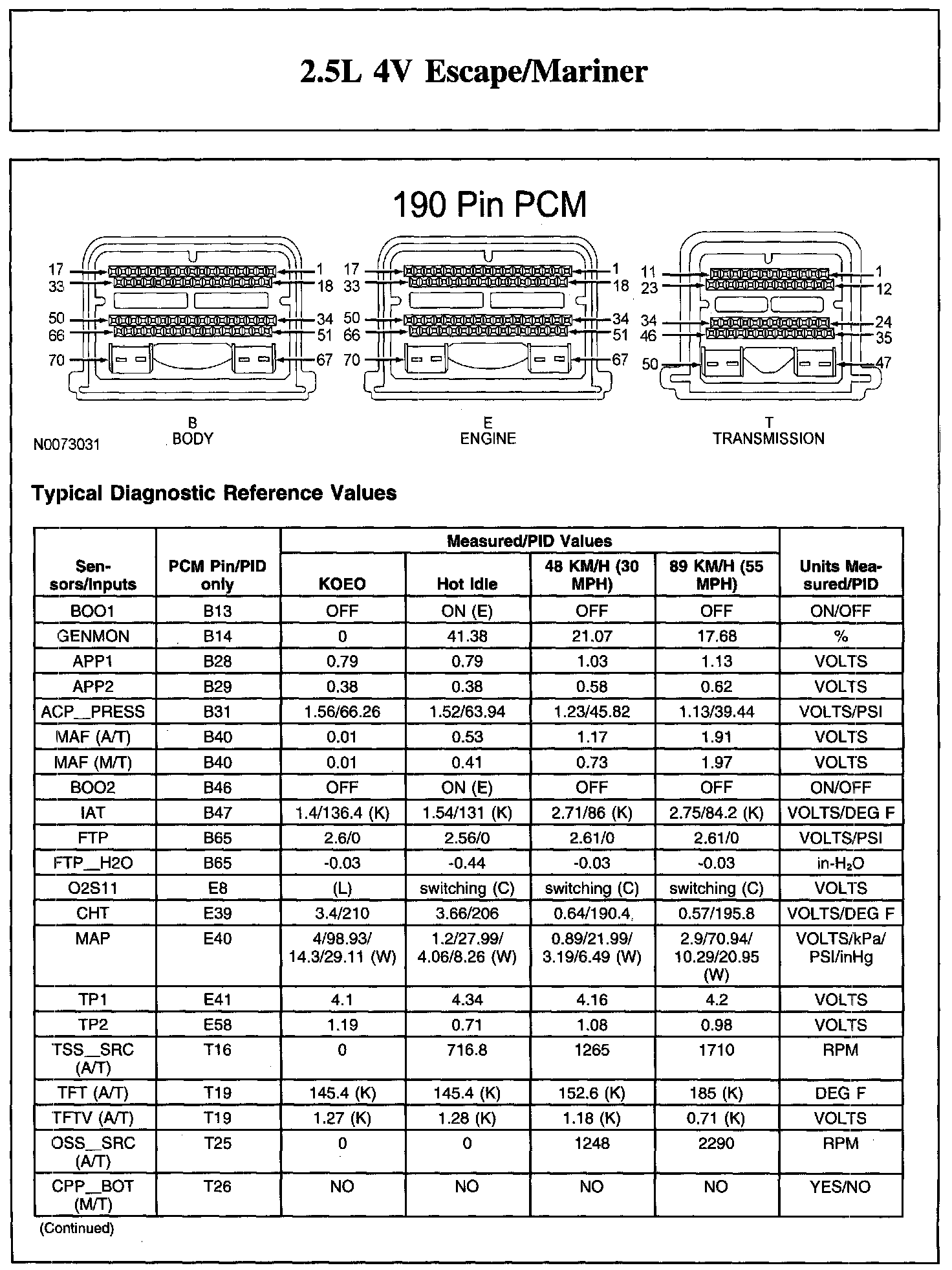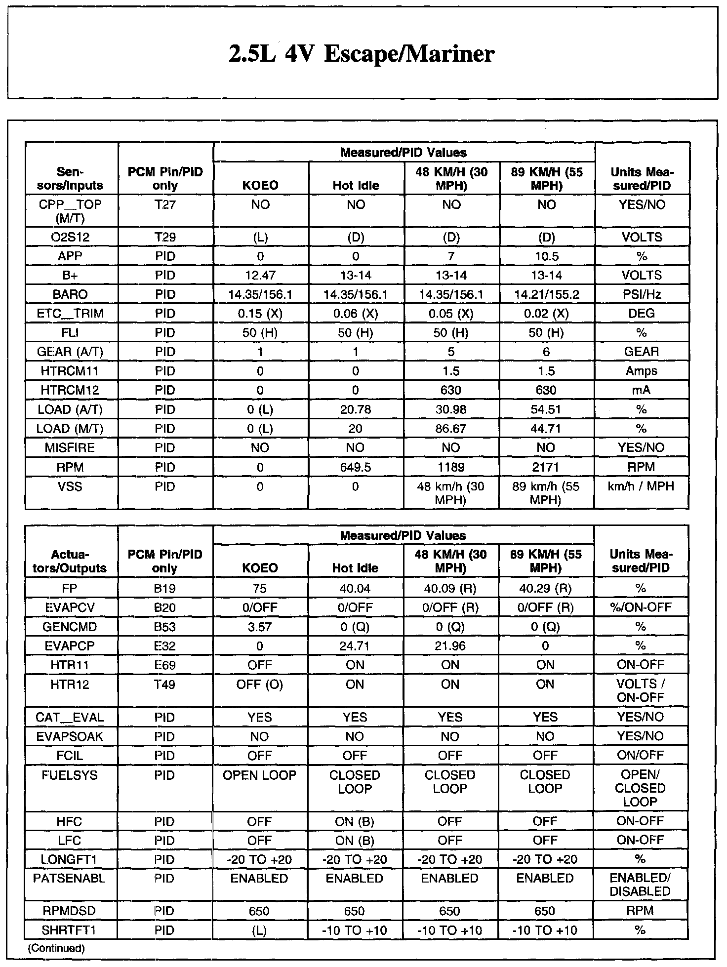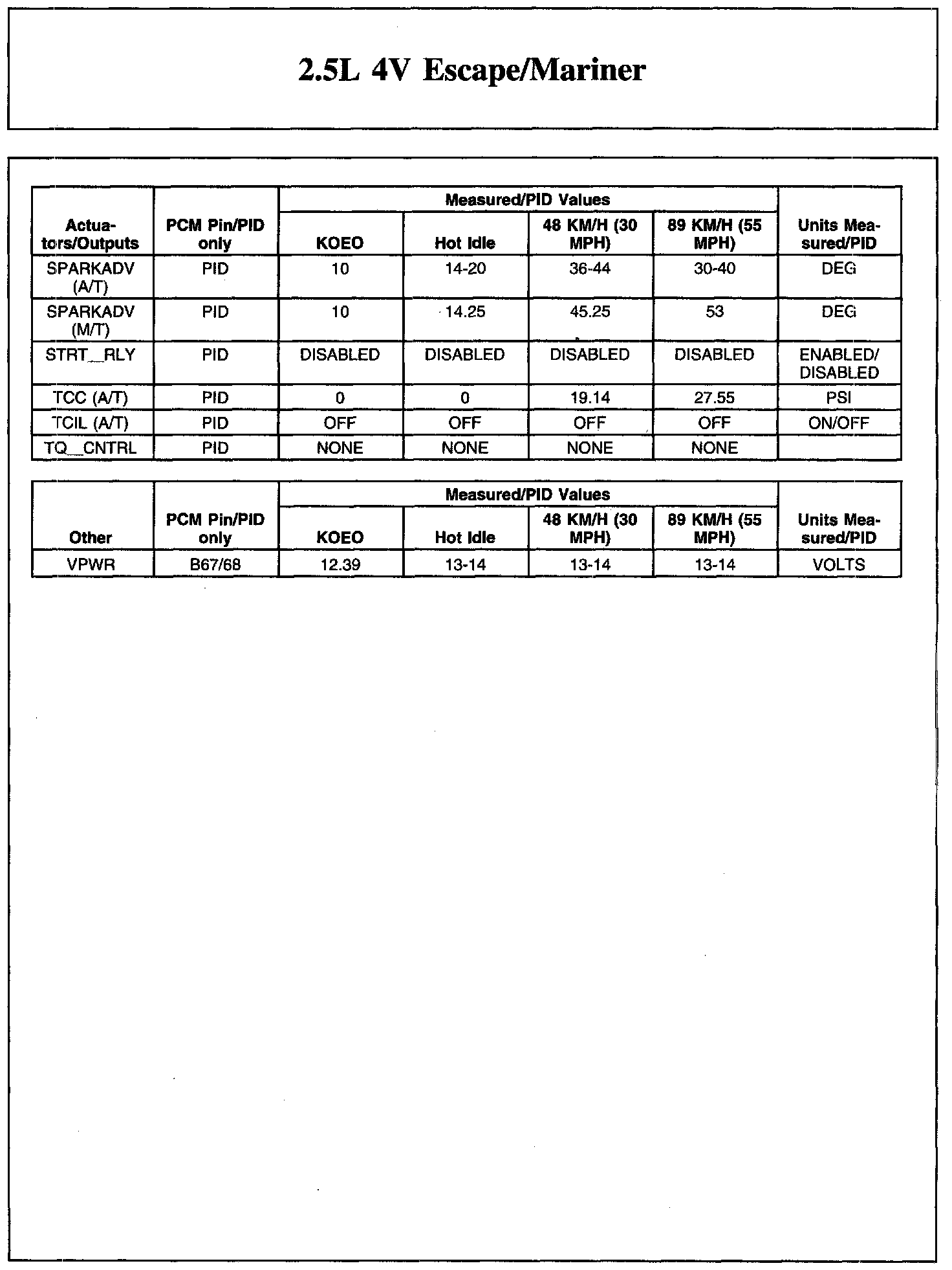 The Typical Diagnostic Reference Value Charts do not display fault parameter identifications (PIDs). These are PIDs which indicate a hard fault with the circuit. They display a value of YES or NO and are PIDs ending with the letter F.