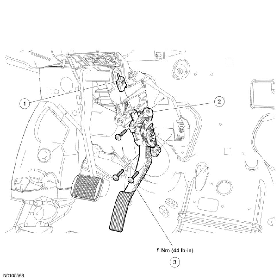 2. Remove the 3 self-tapping screws and the accelerator pedal and sensor assembly.