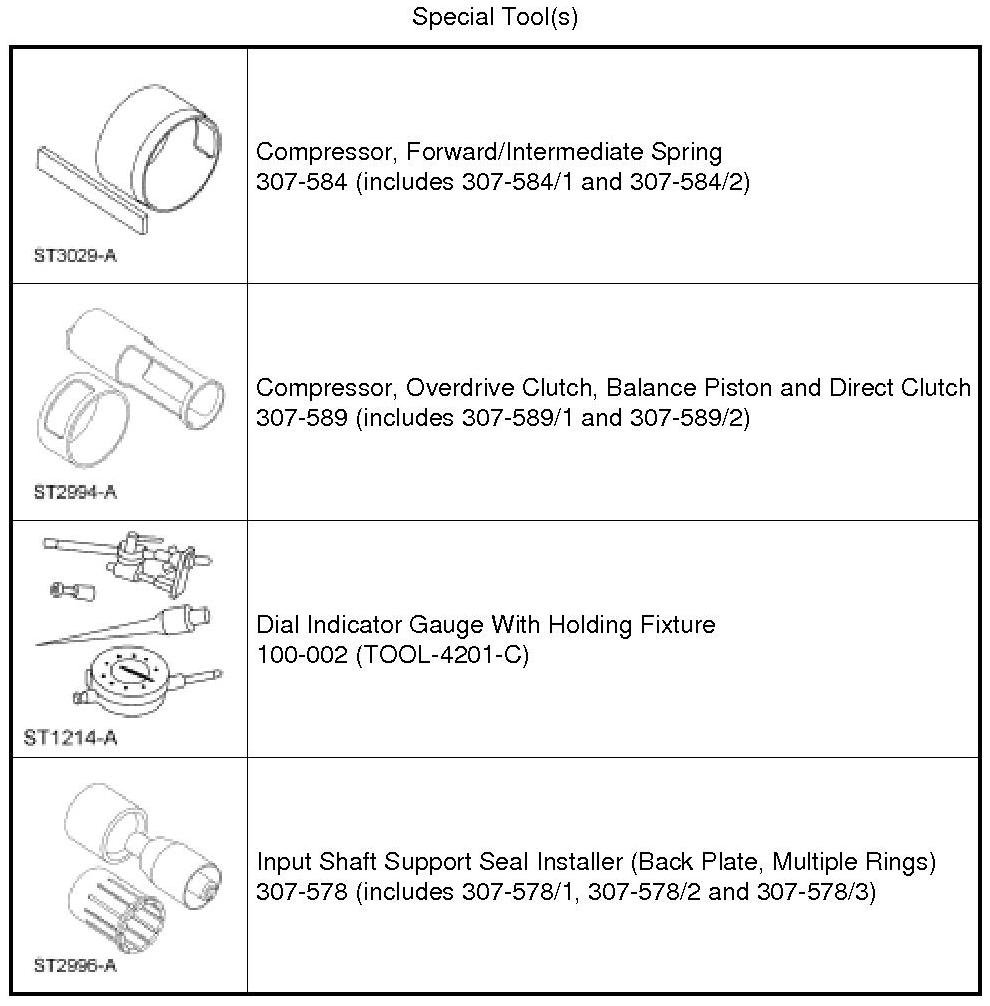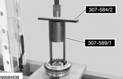 9. Remove the Overdrive Clutch, Balance Piston and Direct Clutch Compressor 307-589/1 and Forward/Intermediate Spring Compressor 307-584/2.