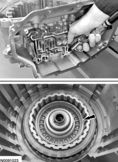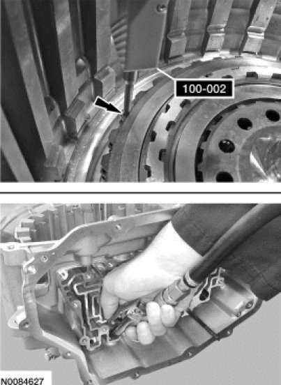 2. Lift the direct (3, 5, R) clutch so that the snap ring is in the groove of the pressure plate.