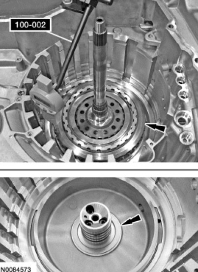 1. Slightly lift up on the direct (3, 5, R) clutch so that the snap ring floats freely.