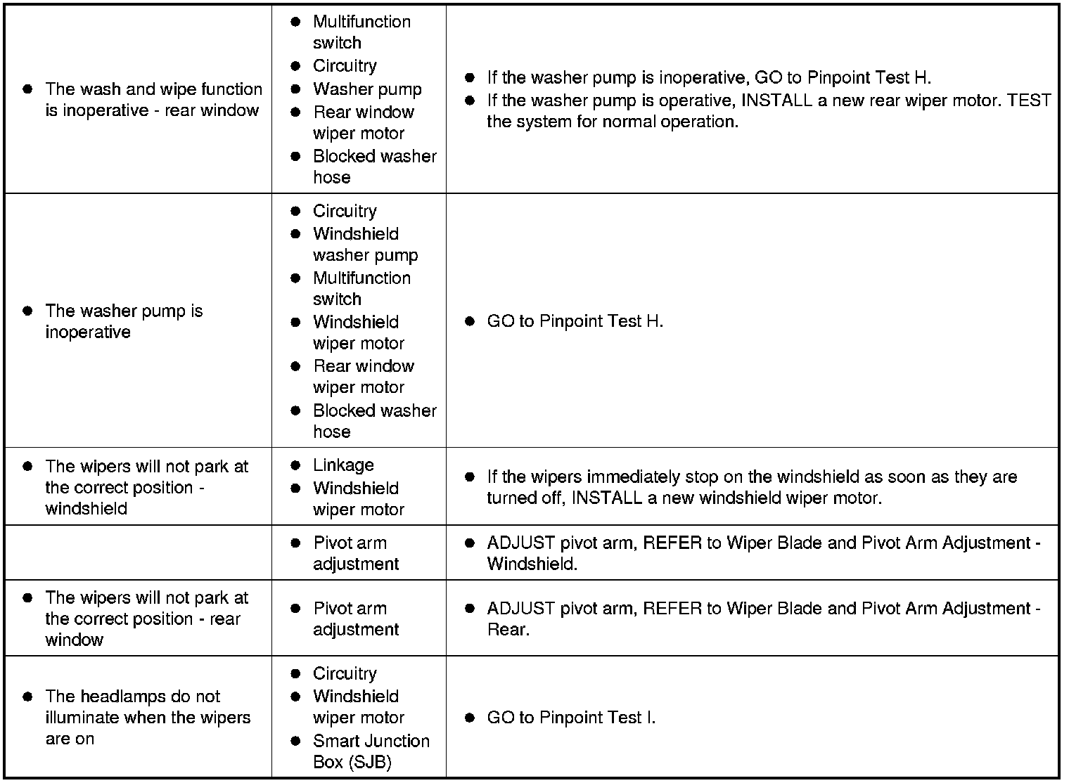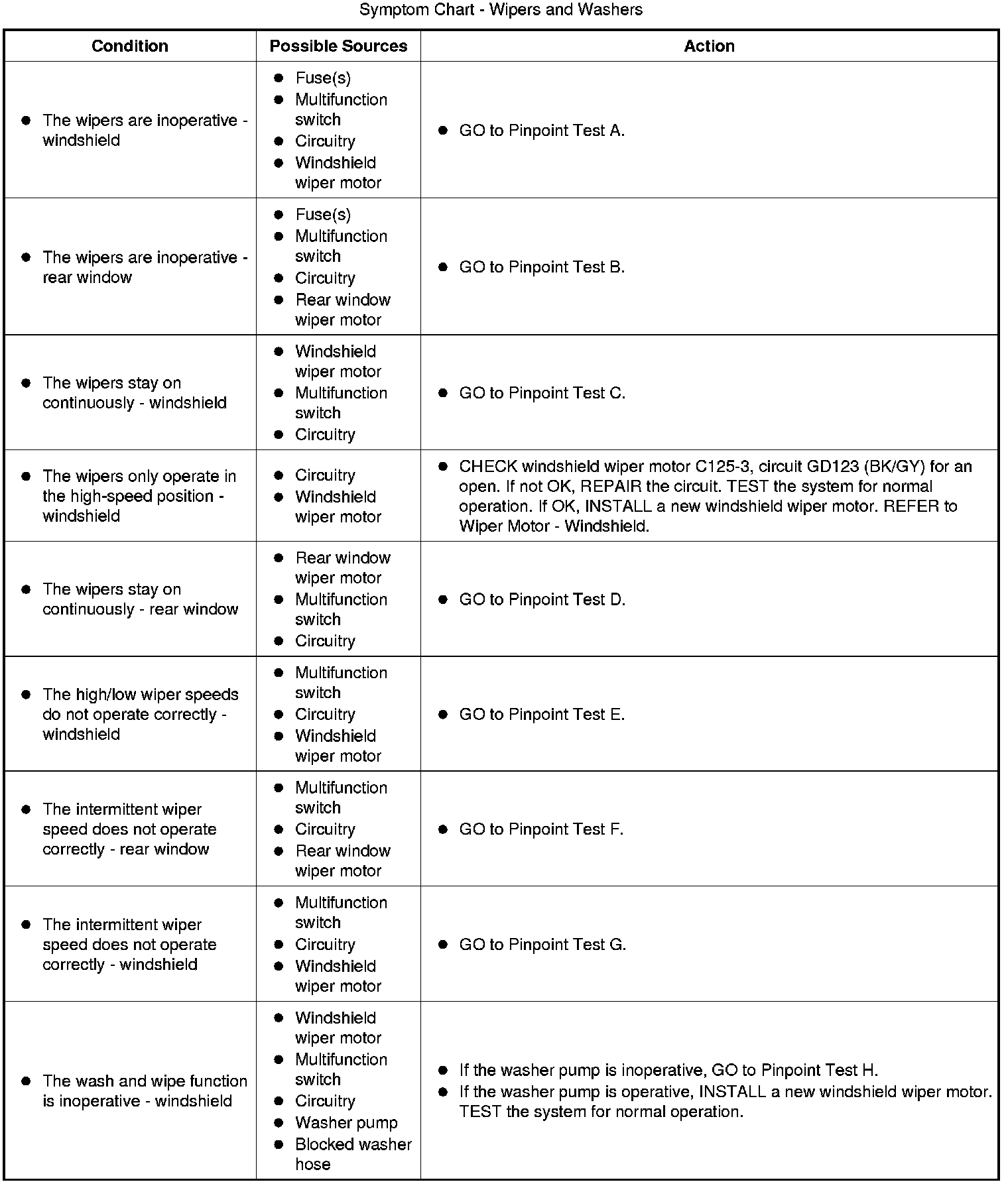 Symptom Chart - Wipers and Washers