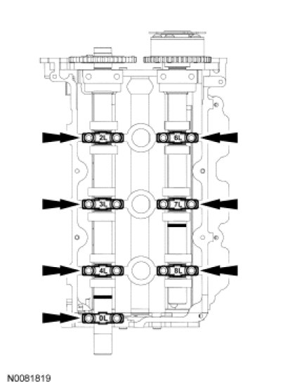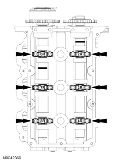 - Stage 2: Individually loosen and then tighten each camshaft bearing cap to 10 Nm (89 lb-in).