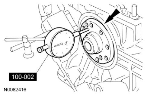 - Move the crankshaft to the front of the cylinder block. Note and record the crankshaft end play.
