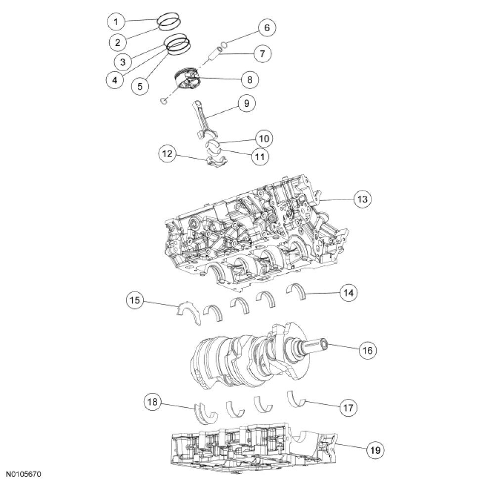 NOTE: Assembly of the engine requires various inspections/measurements of the engine components (engine block, crankshaft, connecting rods, pistons and piston rings). These inspections/measurements will aid in determining if the engine components will require replacement. For additional information, refer to Engine.