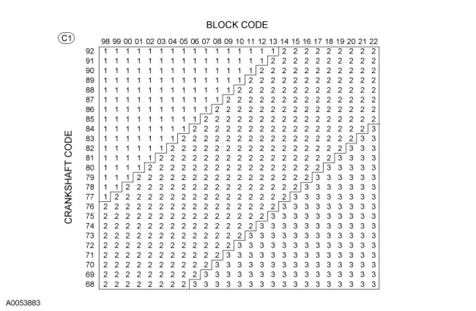 - For example: If the block code is *0609*0711* and the crankshaft code is *8580*8082*, main No. 1 should use grade 1 bearings, as determined by the intersection of the 06 block column and the 85 crankshaft row. Mains 2, 3 and 4 should all be grade 2.