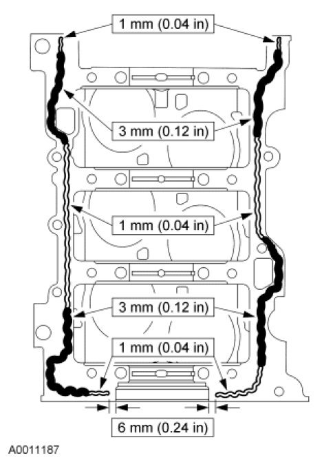 9. NOTICE: The lower cylinder block must be installed and the bolts tightened within 4 minutes of applying the sealant.