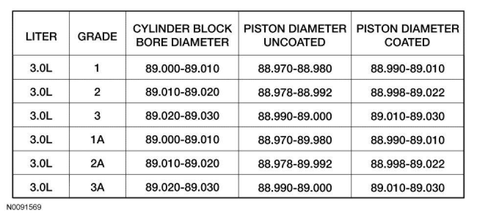 16. Using the chart, select the correct piston grade size for the cylinder bores.