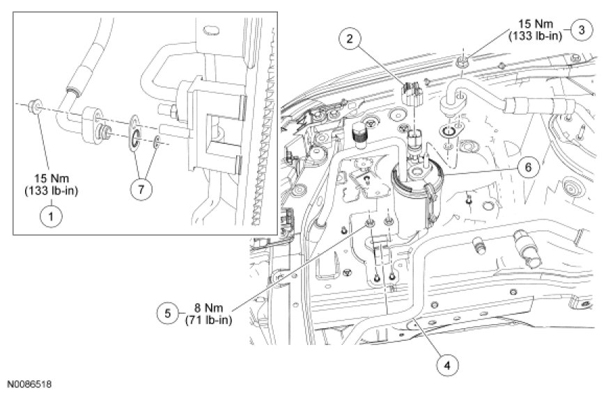 6. Detach the evaporator outlet line from the receiver/drier bracket clip.