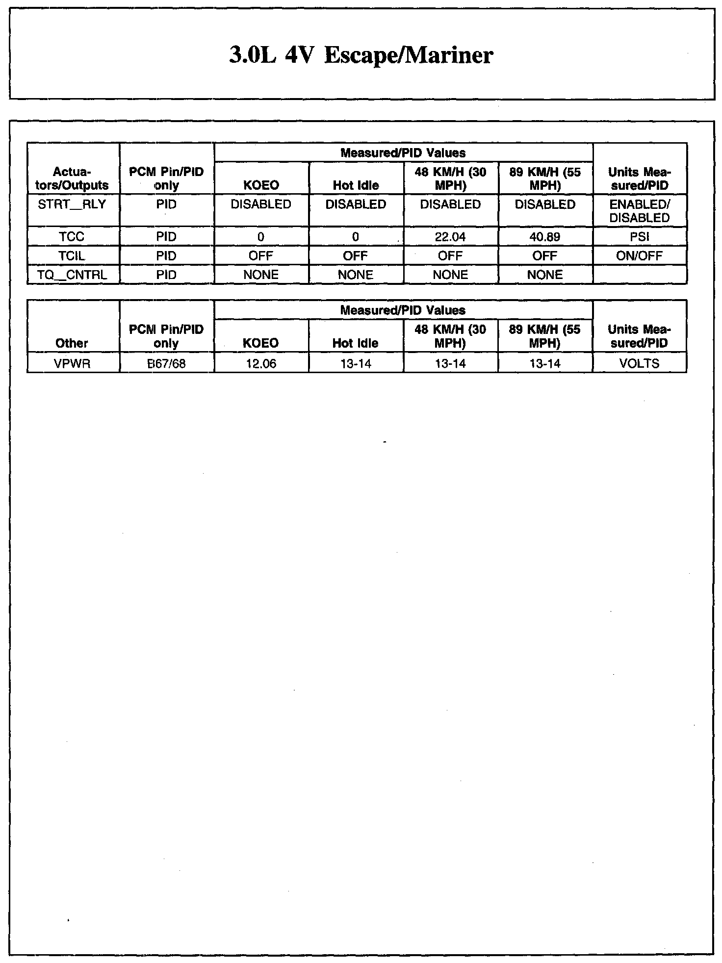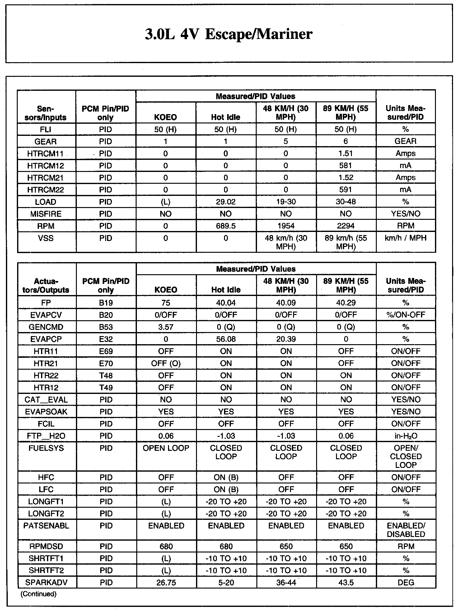 The Typical Diagnostic Reference Value Charts do not display fault parameter identifications (PIDs). These are PIDs which indicate a hard fault with the circuit. They display a value of YES or NO and are PIDs ending with the letter F.