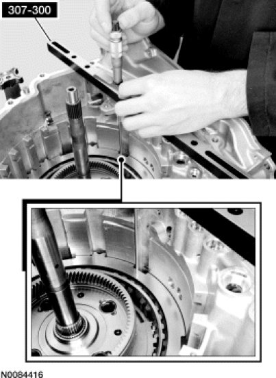 45. Install the Shim Selection Gauge 307-300 on the transaxle case.
