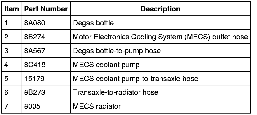 The vehicle uses a pump driven cooling system (referred to as the Motor Electronics Cooling System (MECS)) to transfer heat generated by the eCVT and the Hybrid Electric Vehicle (HEV) battery pack to the atmosphere. The system uses a coolant-to-air radiator design.