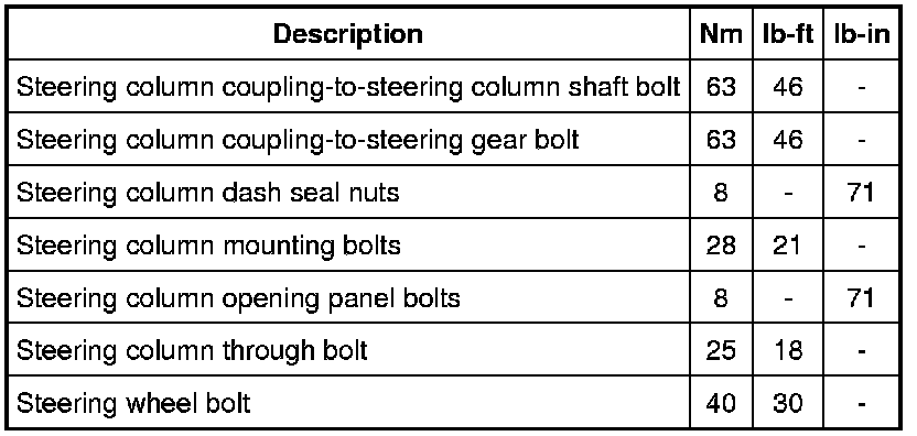 Steering Column: Specifications