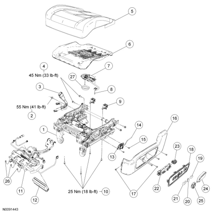 NOTE: Driver memory seat shown, driver and passenger power seat similar.