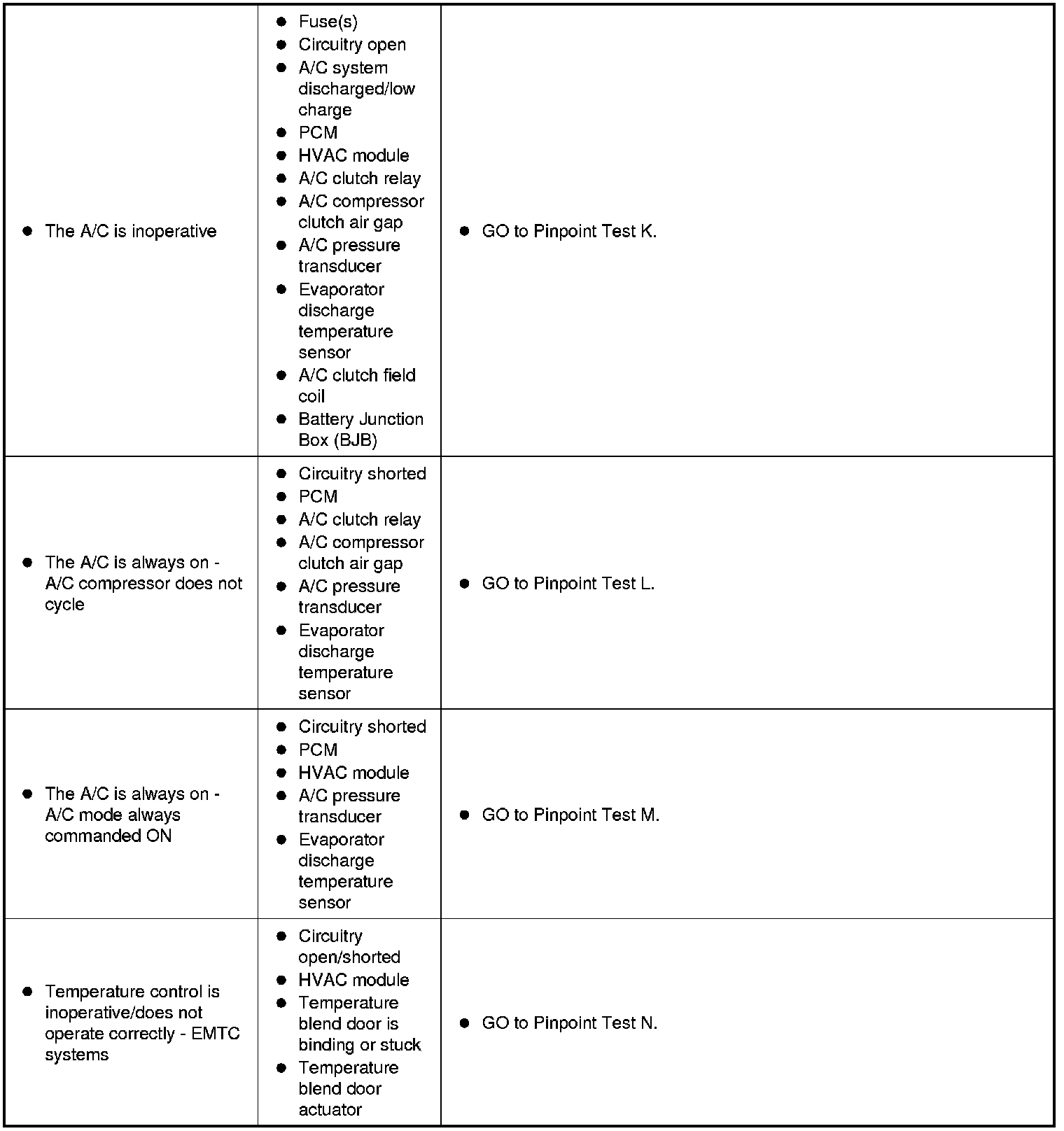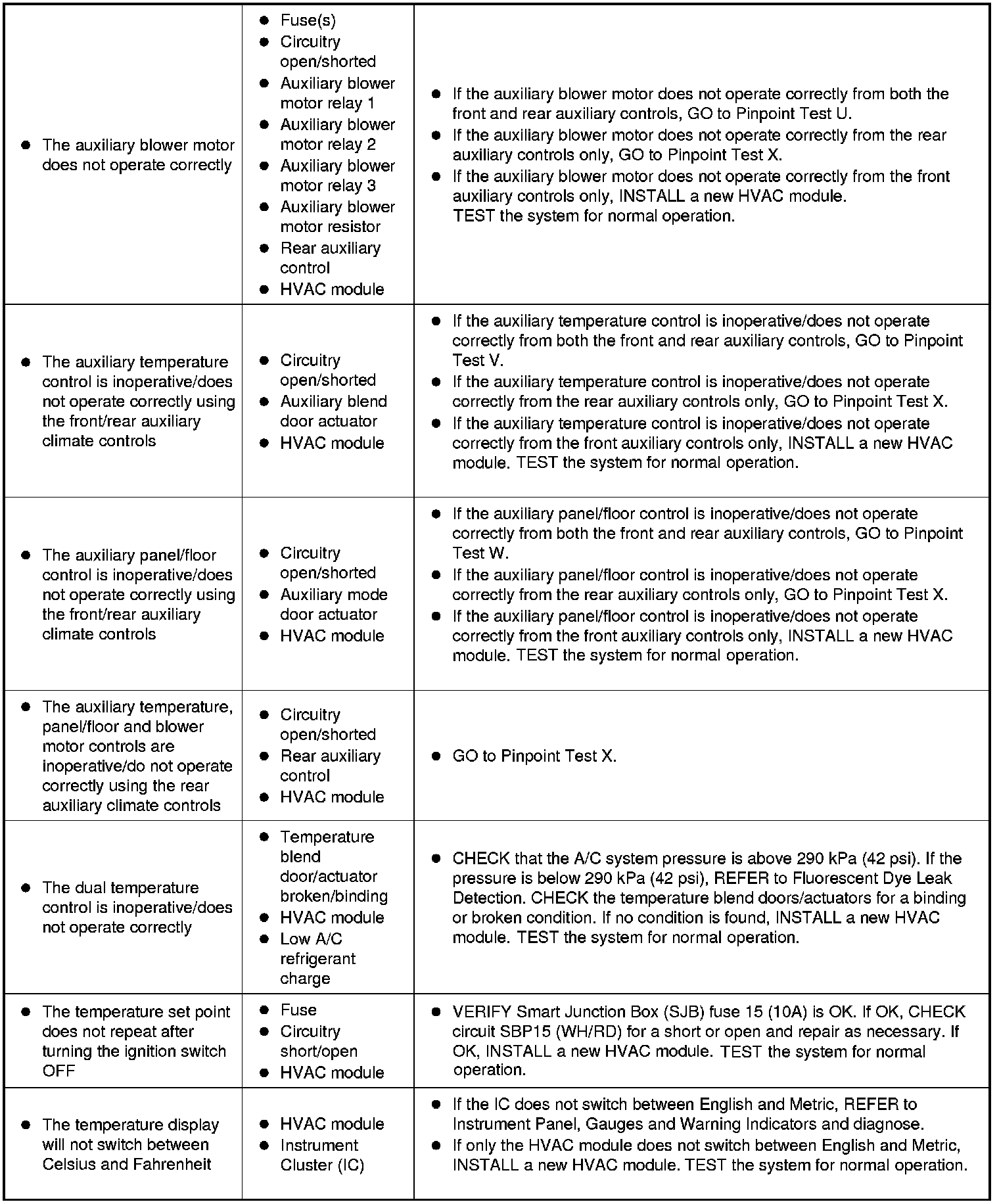 Symptom Chart - Climate Control Systems