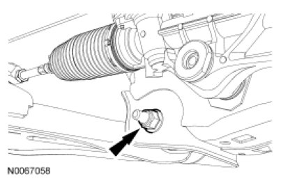 2. Remove and discard the lower arm front and rear nuts and bolts.