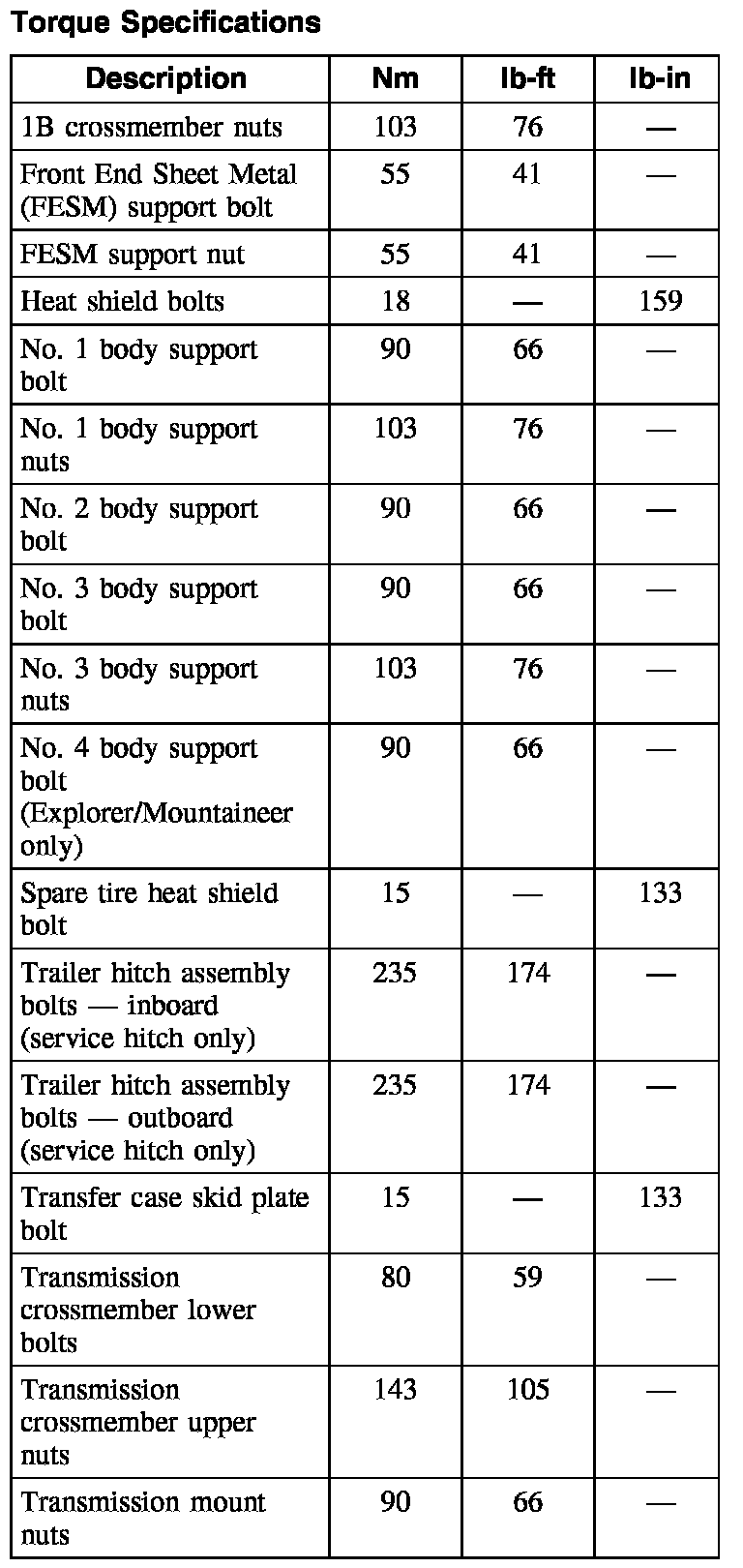 Torque Specifications: