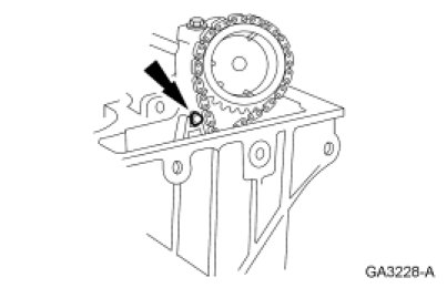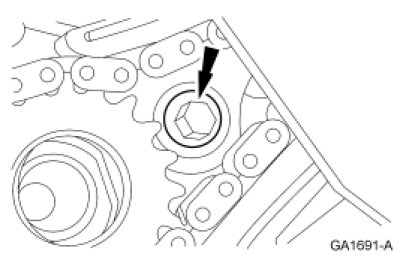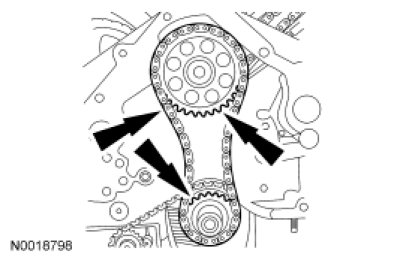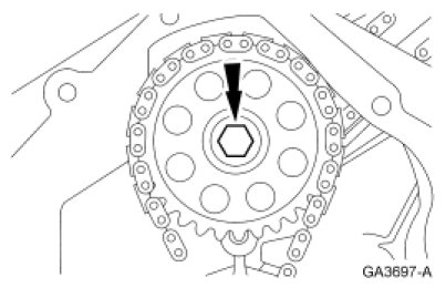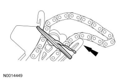 Remove the LH camshaft sprocket from the timing chain. Install a rubber band around the cassette and the timing chain.